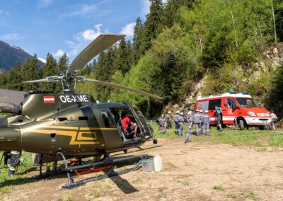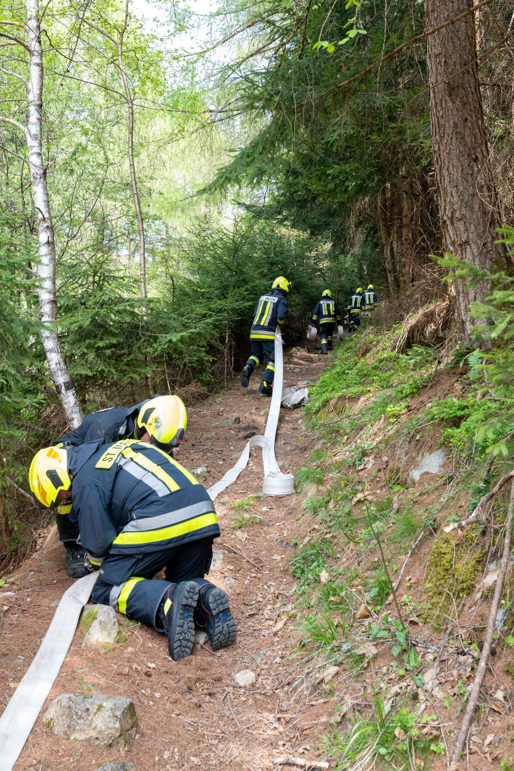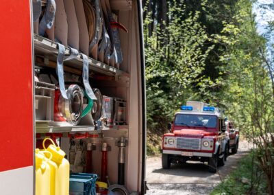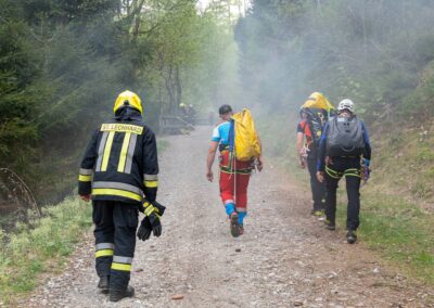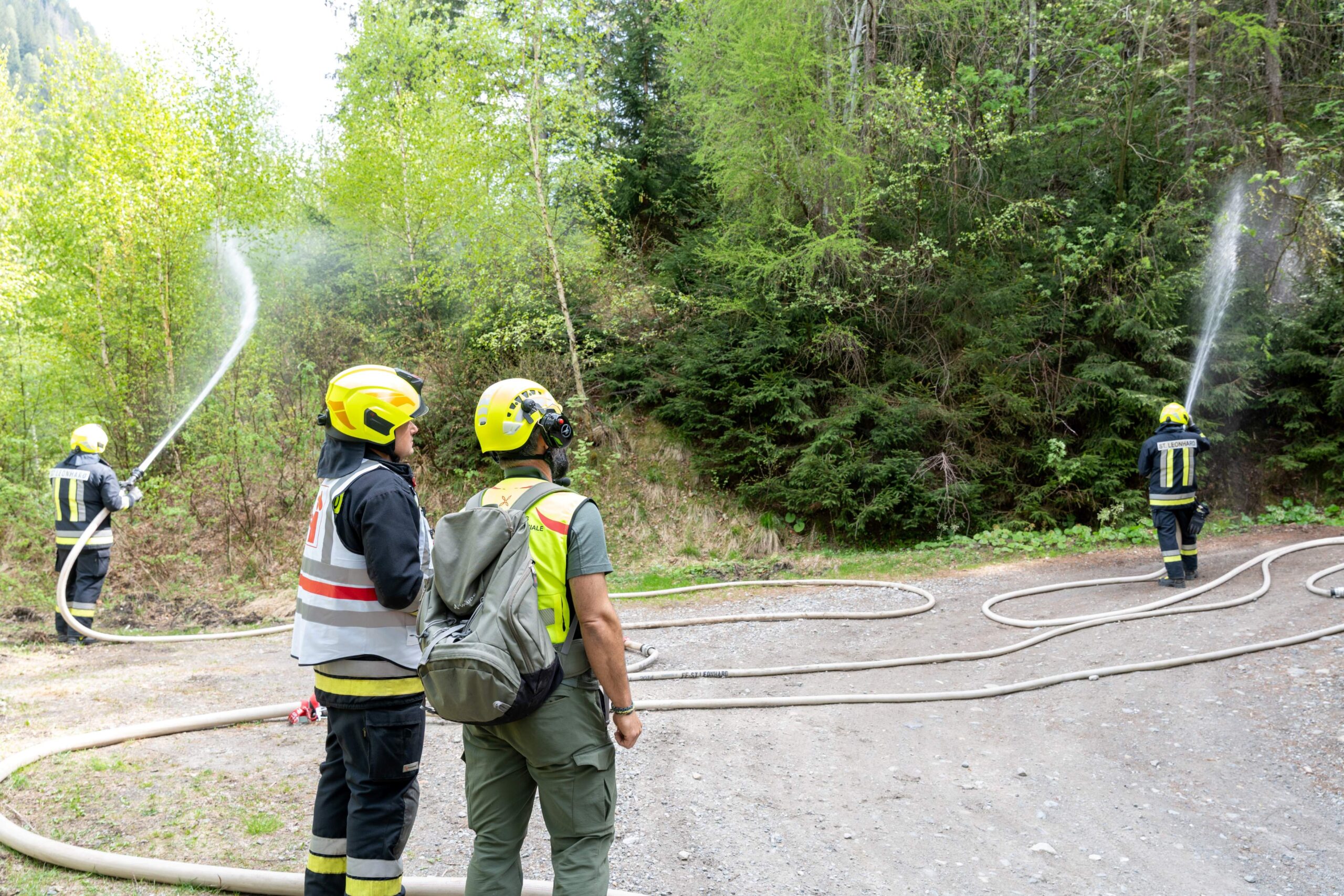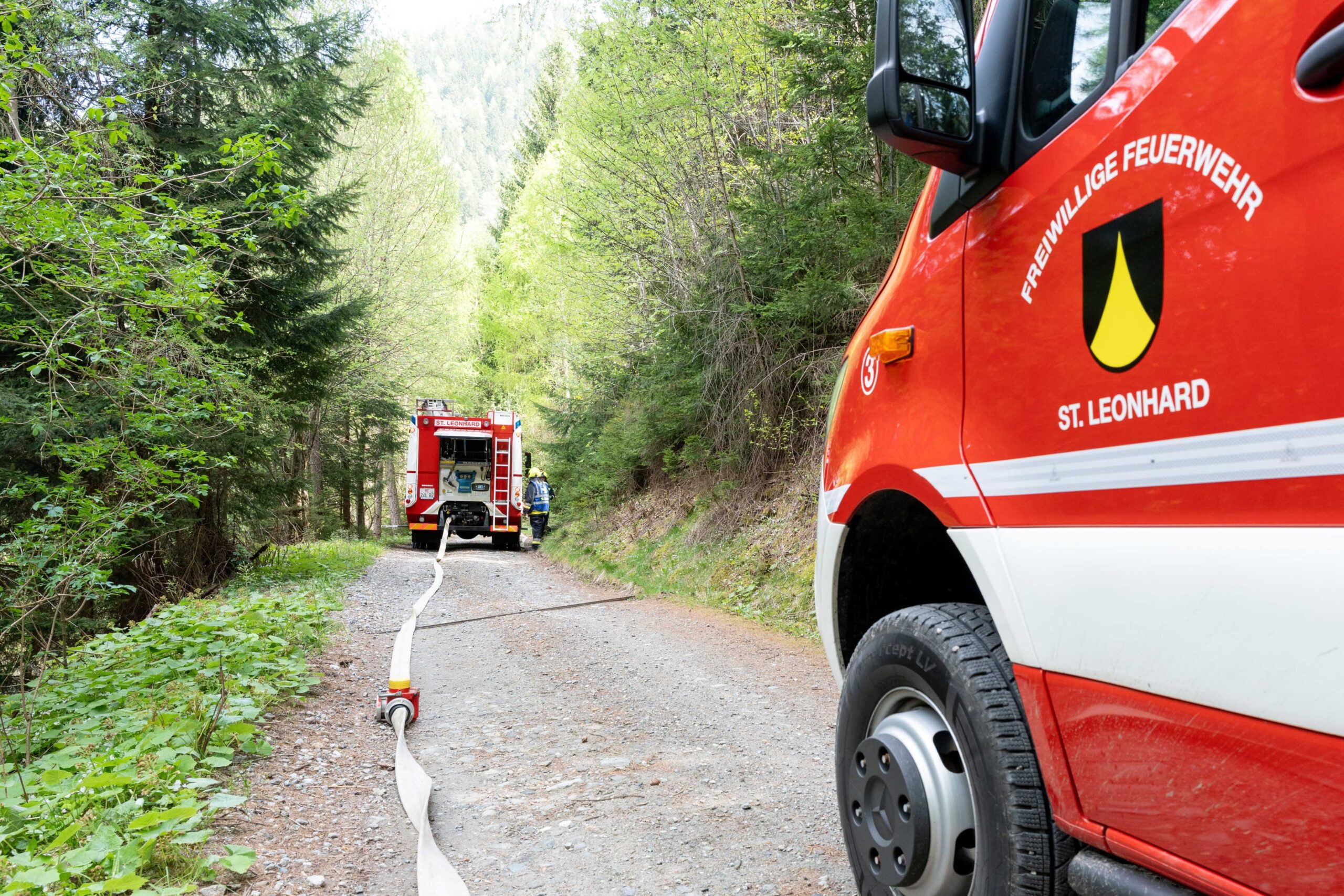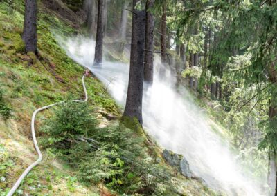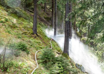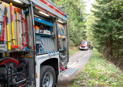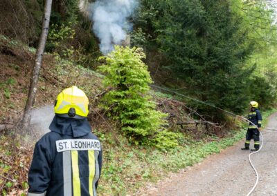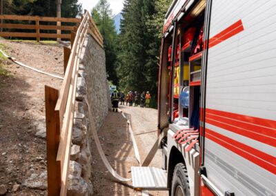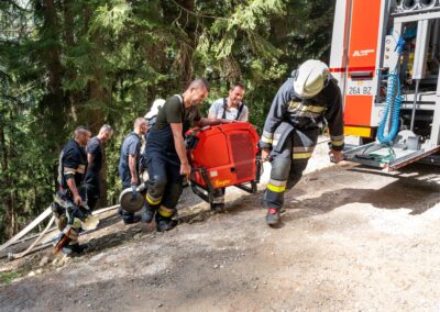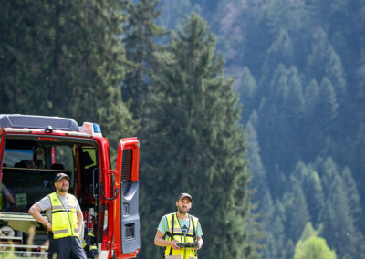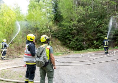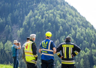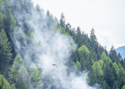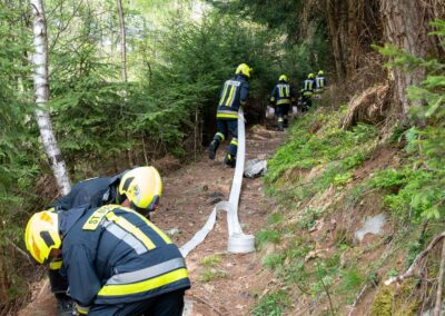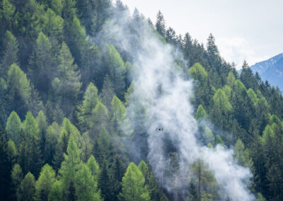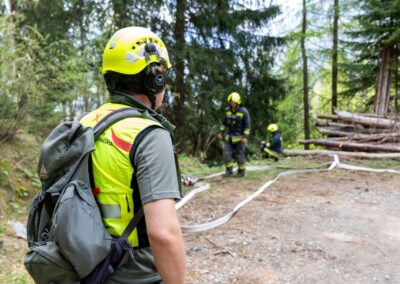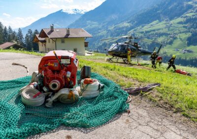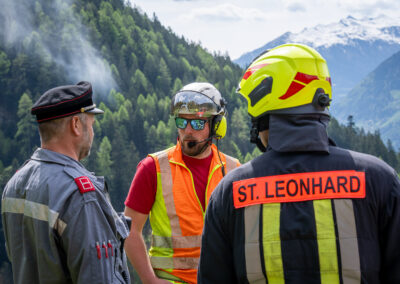 Heuer durfte die FF St. Leonhard eine Waldbrandübung mit einem Löschhubschrauber organisieren. Angenommen wurde ein Waldbrand beim Eingang in das Pfistradtal. Beim sogenannten „Schintleregg“ waren ca. 6.000 m² Waldgebiet in Brand geraten. Gemeinsam mit der FF St. Martin wurden die ersten Löschmaßnahmen eingeleitet, um die weitere Ausbreitung des Brandes zu verhindern. Um Löschwasser aus dem Trinkwassernetz zu sparen, wurde der Aufbau einer Versorgungsleitung veranlasst. Dabei wurde Wasser aus dem Pfistrad-Bach über 180 Höhenmeter und über 1.200 m Schlauchleitung zum Brandobjekt befördert. Diese Aufgabe übernahmen die Kameraden der FF Moos, Rabenstein, Platt und Walten. Insgesamt waren 5 Tragkraftpumpen im Einsatz. Unterstützung bekamen wir auch aus der Luft. Dank eines Hubschraubers konnte sich die Einsatzleitung, bestehend aus Vertretern der Forstbehörde, des FF-Bezirks Meran und der FF St. Leonhard, einen Überblick über das Ausmaß der Schadenslage verschaffen. Im Anschluss wurde der Helikopter genutzt, um erforderliche Transportflüge durchzuführen. Nachdem unser Löschbecken unterhalb des Winnebacher Hofes aufgestellt war, holte sich der Löschhubschrauber dort das Wasser, um es punktgenau abzuwerfen. Mit im Einsatz war auch die Bergrettung St. Leonhard und die FF Meran. In einem sehr abschüssigen Teilbereich wurden Feuerwehrleute sicher abgeseilt, um Glutnester gezielt ablöschen zu können. Die FF Meran hingegen lieferte Flächenregner an, mit welchen entlang eines Forstweges ein Überspringen des Feuers verhindert werden konnte. Die Einsatzleitung wurde beim gegenüberliegenden Spitaler Hof positioniert. Gemeinsam mit dem ELF Meran, Vertretern der Forst und des Feuerwehrbezirks Meran, Bürgermeister Robert Tschöll, den Einsatzleitern der FF St. Leonhard und unserer Drohne gelang es, die verschiedenen Informationen zu bündeln und die erforderlichen Schritte einzuleiten. Insgesamt waren 110 Einsatzkräfte mit 20 Fahrzeugen an der Übung beteiligt. Die FF-Jugend St. Leonhard nahm die Großübung zum Anlass um sich Vorort ein Bild zu machen. Fotografisch festgehalten wurde die Übung von Simone Peist, Roman Schenk und Walter Haller. Abschließend möchten wir uns bei den Grundeigentümern und allen, die zum guten Gelingen der Übung beigetragen haben, recht herzlich bedanken.