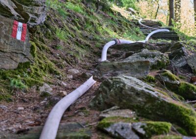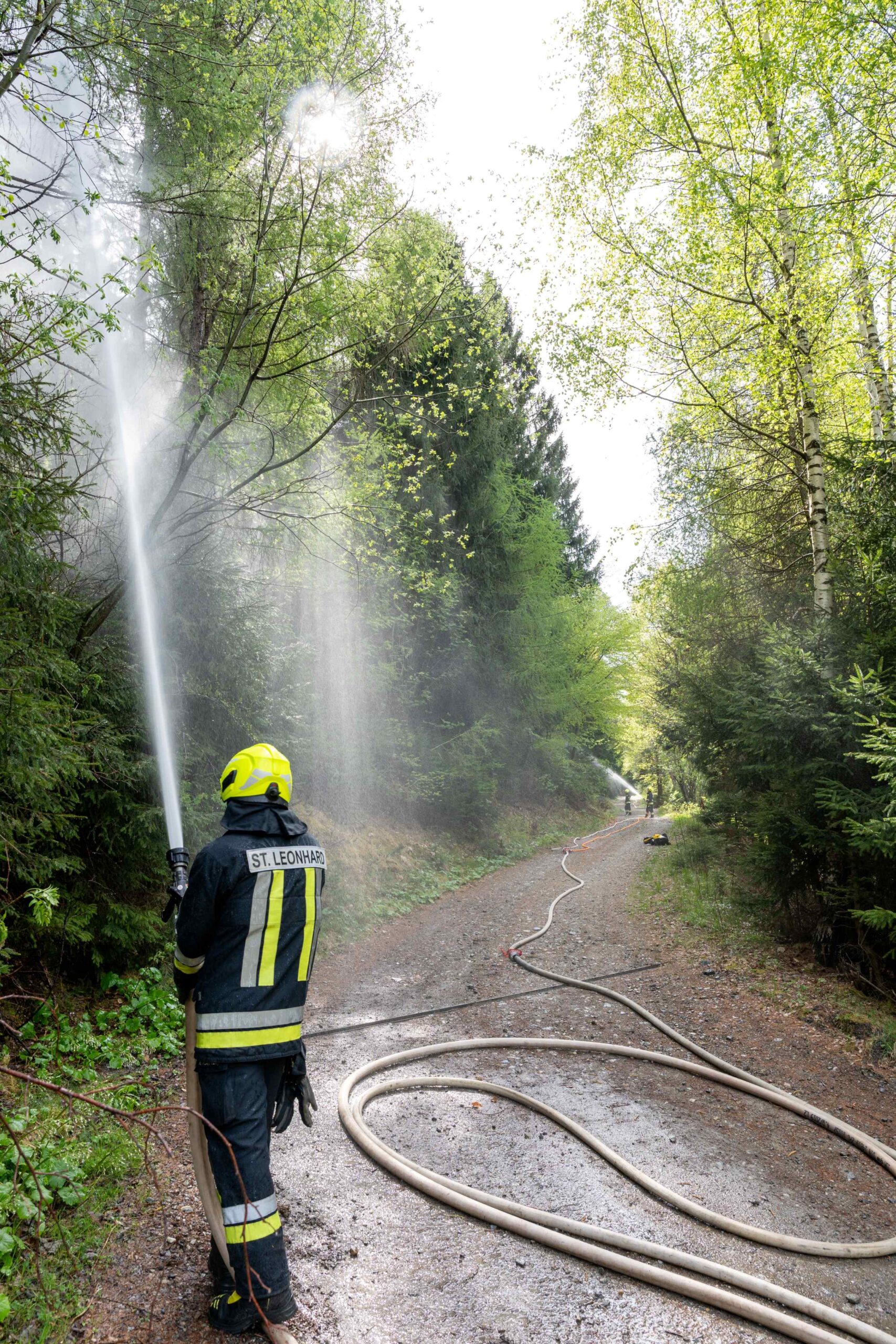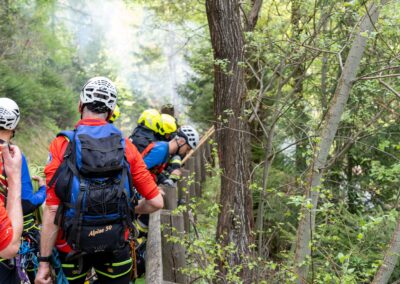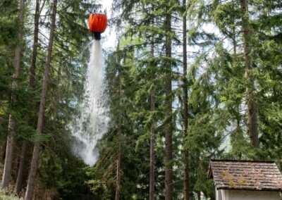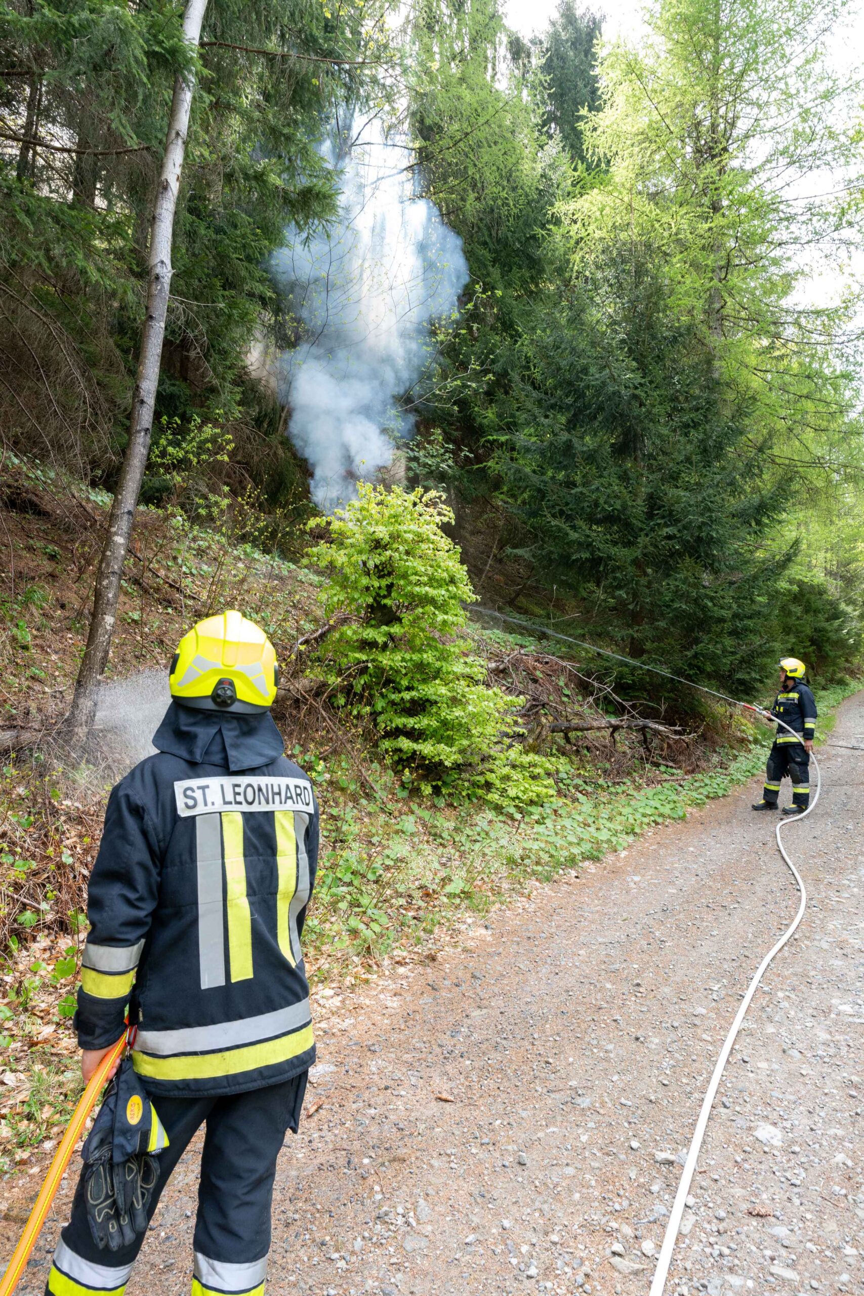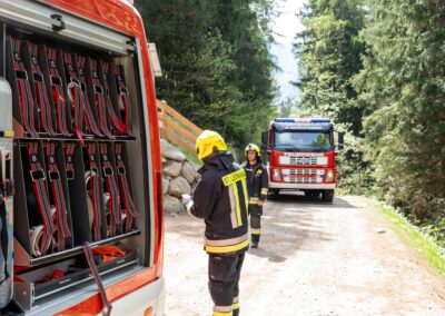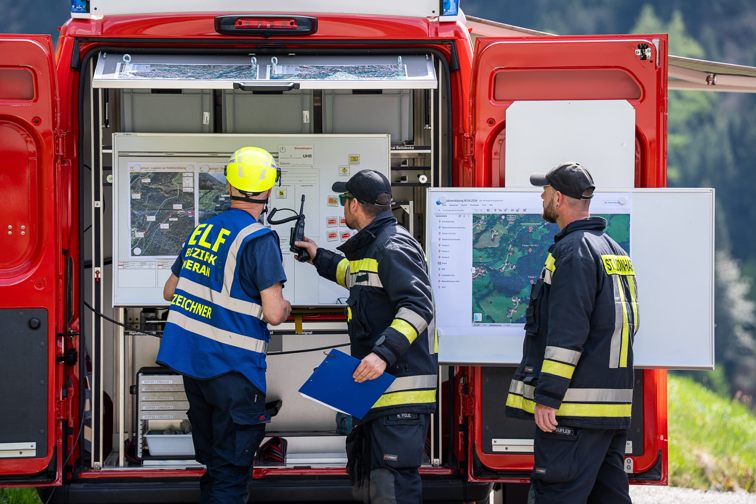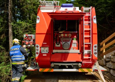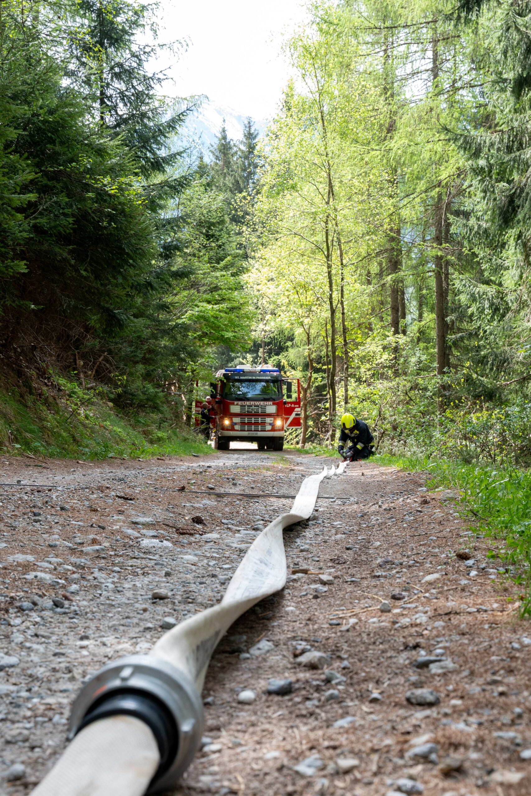 Heuer durfte die FF St. Leonhard eine Waldbrandübung mit einem Löschhubschrauber organisieren. Angenommen wurde ein Waldbrand beim Eingang in das Pfistradtal. Beim sogenannten „Schintleregg“ waren ca. 6.000 m² Waldgebiet in Brand geraten. Gemeinsam mit der FF St. Martin wurden die ersten Löschmaßnahmen eingeleitet, um die weitere Ausbreitung des Brandes zu verhindern. Um Löschwasser aus dem Trinkwassernetz zu sparen, wurde der Aufbau einer Versorgungsleitung veranlasst. Dabei wurde Wasser aus dem Pfistrad-Bach über 180 Höhenmeter und über 1.200 m Schlauchleitung zum Brandobjekt befördert. Diese Aufgabe übernahmen die Kameraden der FF Moos, Rabenstein, Platt und Walten. Insgesamt waren 5 Tragkraftpumpen im Einsatz. Unterstützung bekamen wir auch aus der Luft. Dank eines Hubschraubers konnte sich die Einsatzleitung, bestehend aus Vertretern der Forstbehörde, des FF-Bezirks Meran und der FF St. Leonhard, einen Überblick über das Ausmaß der Schadenslage verschaffen. Im Anschluss wurde der Helikopter genutzt, um erforderliche Transportflüge durchzuführen. Nachdem unser Löschbecken unterhalb des Winnebacher Hofes aufgestellt war, holte sich der Löschhubschrauber dort das Wasser, um es punktgenau abzuwerfen. Mit im Einsatz war auch die Bergrettung St. Leonhard und die FF Meran. In einem sehr abschüssigen Teilbereich wurden Feuerwehrleute sicher abgeseilt, um Glutnester gezielt ablöschen zu können. Die FF Meran hingegen lieferte Flächenregner an, mit welchen entlang eines Forstweges ein Überspringen des Feuers verhindert werden konnte. Die Einsatzleitung wurde beim gegenüberliegenden Spitaler Hof positioniert. Gemeinsam mit dem ELF Meran, Vertretern der Forst und des Feuerwehrbezirks Meran, Bürgermeister Robert Tschöll, den Einsatzleitern der FF St. Leonhard und unserer Drohne gelang es, die verschiedenen Informationen zu bündeln und die erforderlichen Schritte einzuleiten. Insgesamt waren 110 Einsatzkräfte mit 20 Fahrzeugen an der Übung beteiligt. Die FF-Jugend St. Leonhard nahm die Großübung zum Anlass um sich Vorort ein Bild zu machen. Fotografisch festgehalten wurde die Übung von Simone Peist, Roman Schenk und Walter Haller. Abschließend möchten wir uns bei den Grundeigentümern und allen, die zum guten Gelingen der Übung beigetragen haben, recht herzlich bedanken.