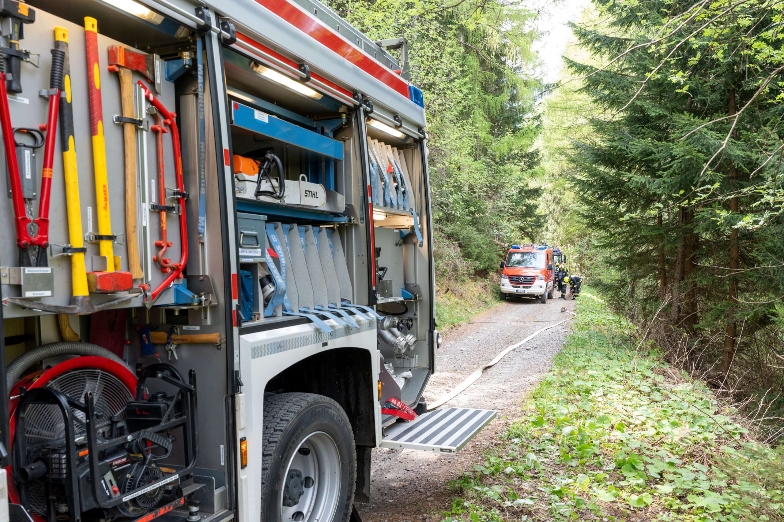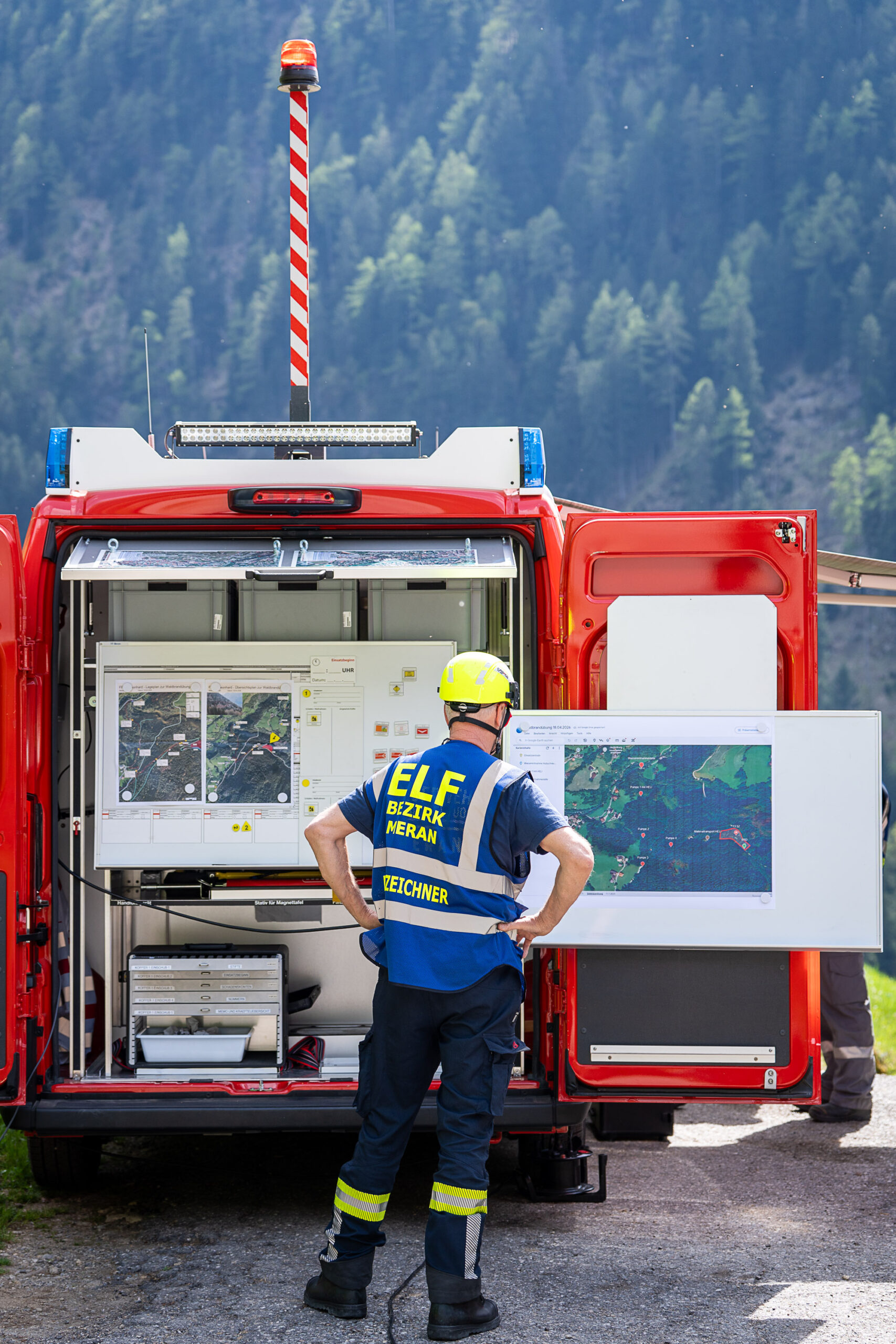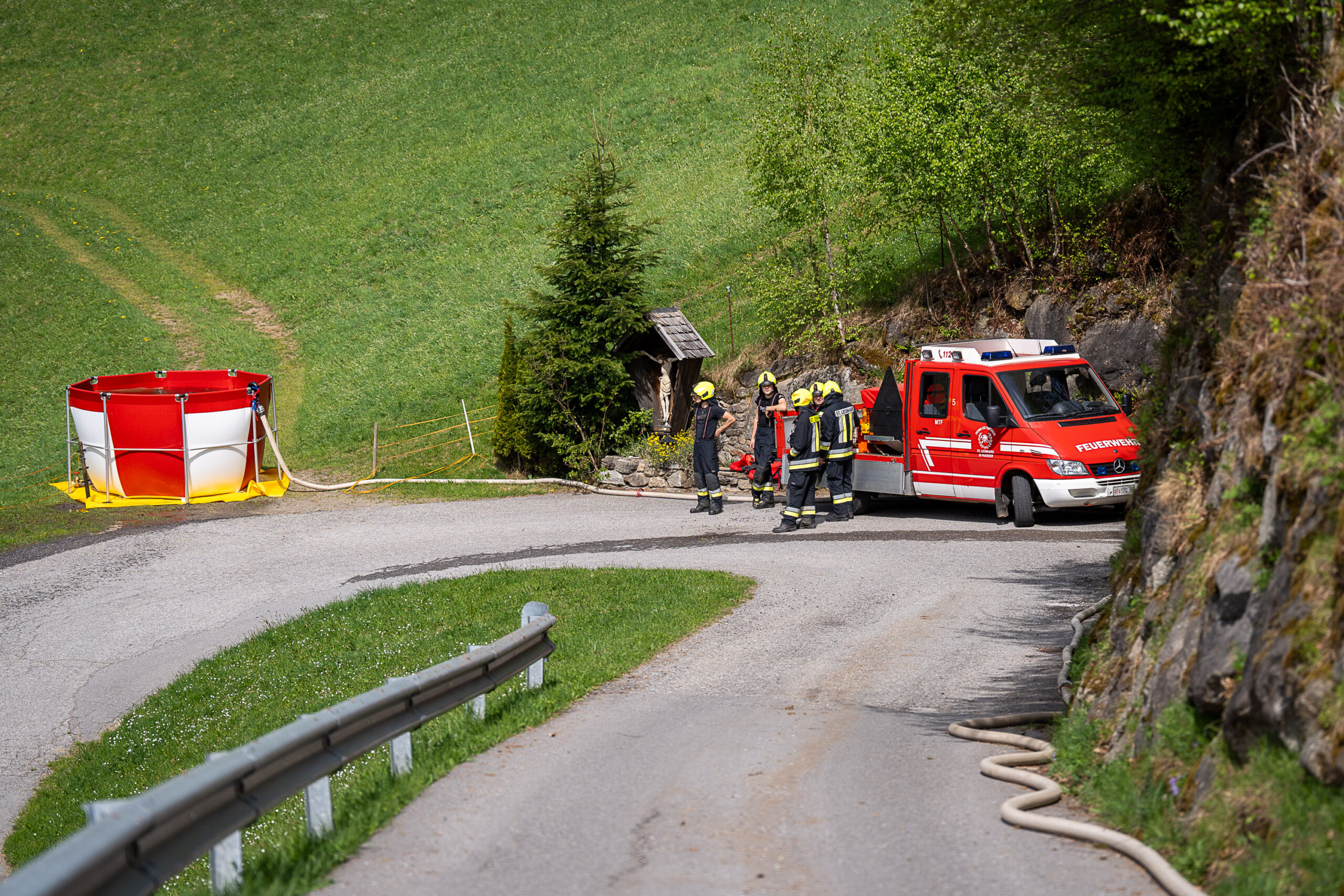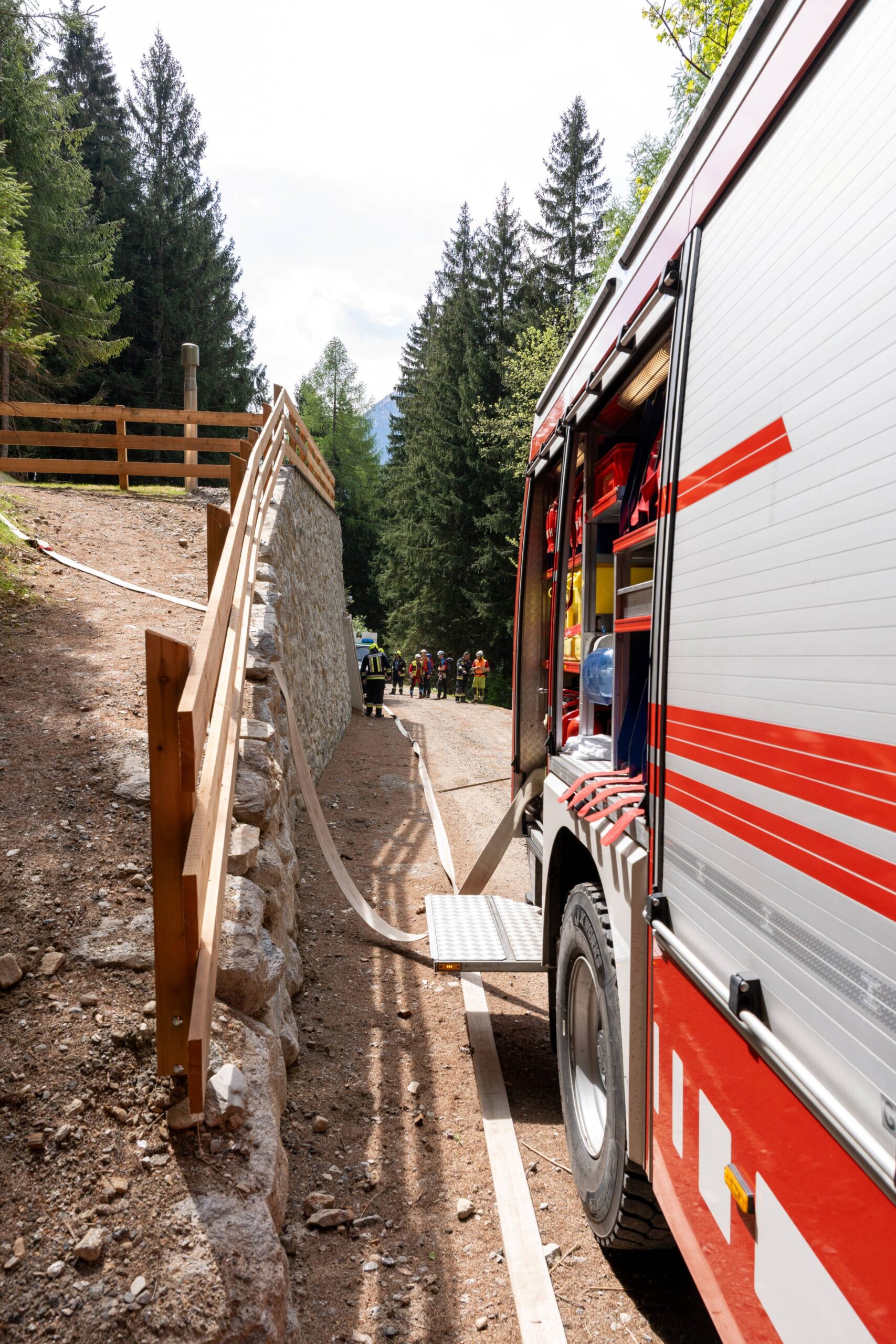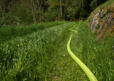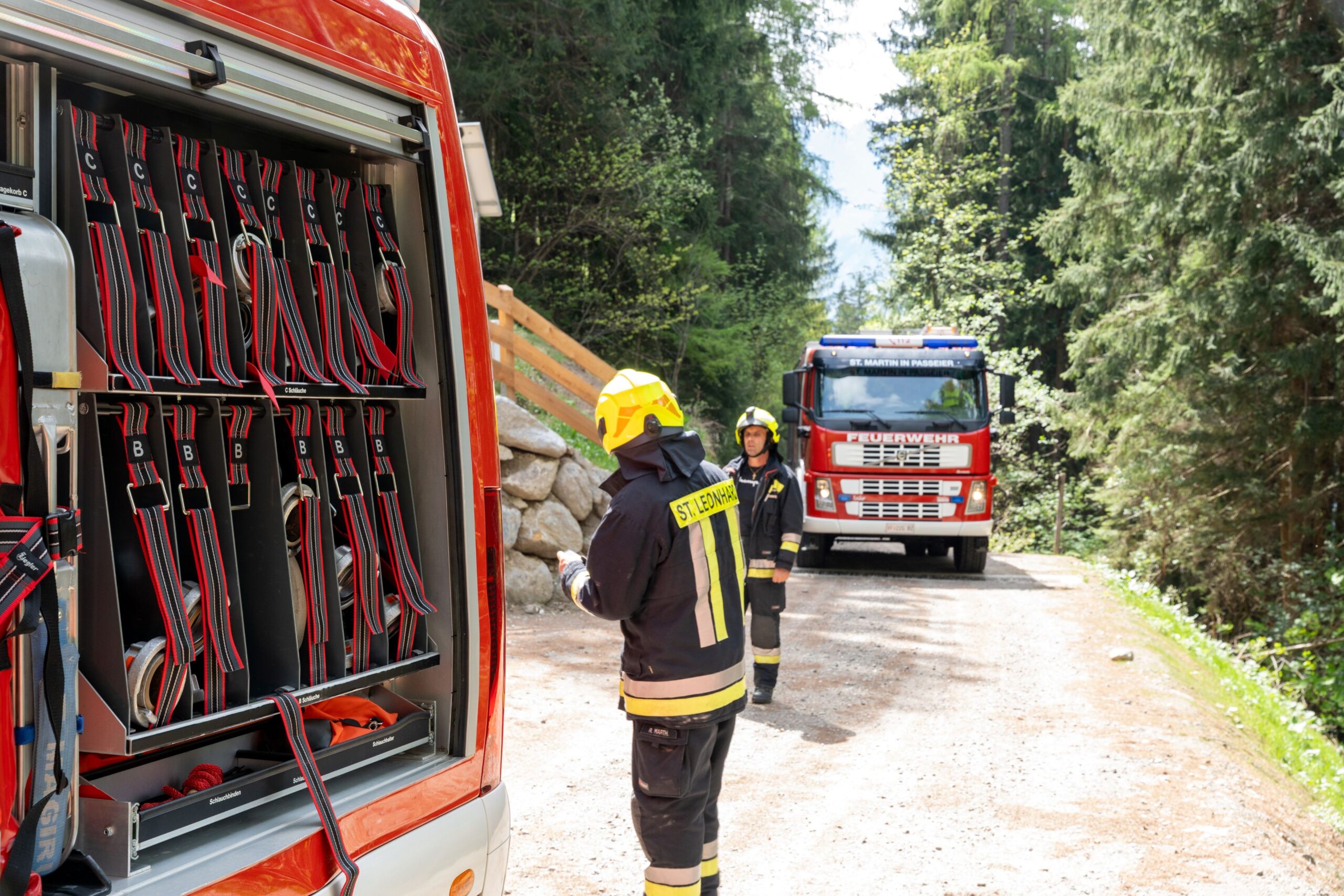 Heuer durfte die FF St. Leonhard eine Waldbrandübung mit einem Löschhubschrauber organisieren. Angenommen wurde ein Waldbrand beim Eingang in das Pfistradtal. Beim sogenannten „Schintleregg“ waren ca. 6.000 m² Waldgebiet in Brand geraten. Gemeinsam mit der FF St. Martin wurden die ersten Löschmaßnahmen eingeleitet, um die weitere Ausbreitung des Brandes zu verhindern. Um Löschwasser aus dem Trinkwassernetz zu sparen, wurde der Aufbau einer Versorgungsleitung veranlasst. Dabei wurde Wasser aus dem Pfistrad-Bach über 180 Höhenmeter und über 1.200 m Schlauchleitung zum Brandobjekt befördert. Diese Aufgabe übernahmen die Kameraden der FF Moos, Rabenstein, Platt und Walten. Insgesamt waren 5 Tragkraftpumpen im Einsatz. Unterstützung bekamen wir auch aus der Luft. Dank eines Hubschraubers konnte sich die Einsatzleitung, bestehend aus Vertretern der Forstbehörde, des FF-Bezirks Meran und der FF St. Leonhard, einen Überblick über das Ausmaß der Schadenslage verschaffen. Im Anschluss wurde der Helikopter genutzt, um erforderliche Transportflüge durchzuführen. Nachdem unser Löschbecken unterhalb des Winnebacher Hofes aufgestellt war, holte sich der Löschhubschrauber dort das Wasser, um es punktgenau abzuwerfen. Mit im Einsatz war auch die Bergrettung St. Leonhard und die FF Meran. In einem sehr abschüssigen Teilbereich wurden Feuerwehrleute sicher abgeseilt, um Glutnester gezielt ablöschen zu können. Die FF Meran hingegen lieferte Flächenregner an, mit welchen entlang eines Forstweges ein Überspringen des Feuers verhindert werden konnte. Die Einsatzleitung wurde beim gegenüberliegenden Spitaler Hof positioniert. Gemeinsam mit dem ELF Meran, Vertretern der Forst und des Feuerwehrbezirks Meran, Bürgermeister Robert Tschöll, den Einsatzleitern der FF St. Leonhard und unserer Drohne gelang es, die verschiedenen Informationen zu bündeln und die erforderlichen Schritte einzuleiten. Insgesamt waren 110 Einsatzkräfte mit 20 Fahrzeugen an der Übung beteiligt. Die FF-Jugend St. Leonhard nahm die Großübung zum Anlass um sich Vorort ein Bild zu machen. Fotografisch festgehalten wurde die Übung von Simone Peist, Roman Schenk und Walter Haller. Abschließend möchten wir uns bei den Grundeigentümern und allen, die zum guten Gelingen der Übung beigetragen haben, recht herzlich bedanken.