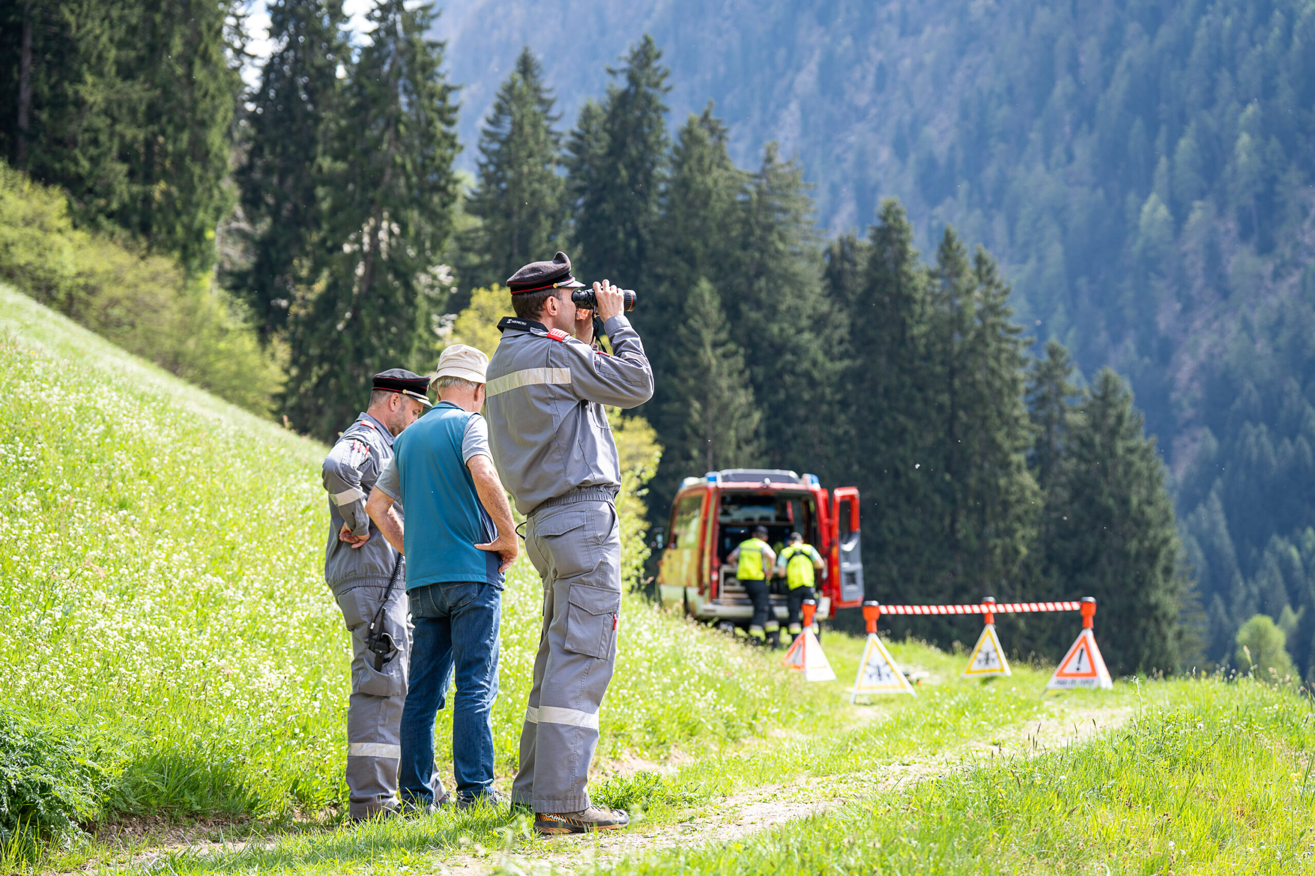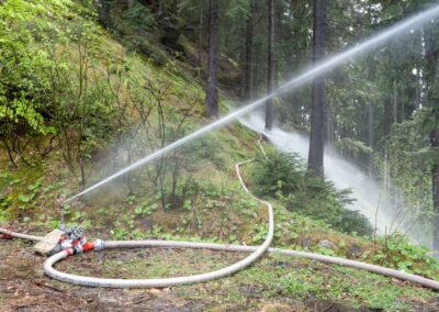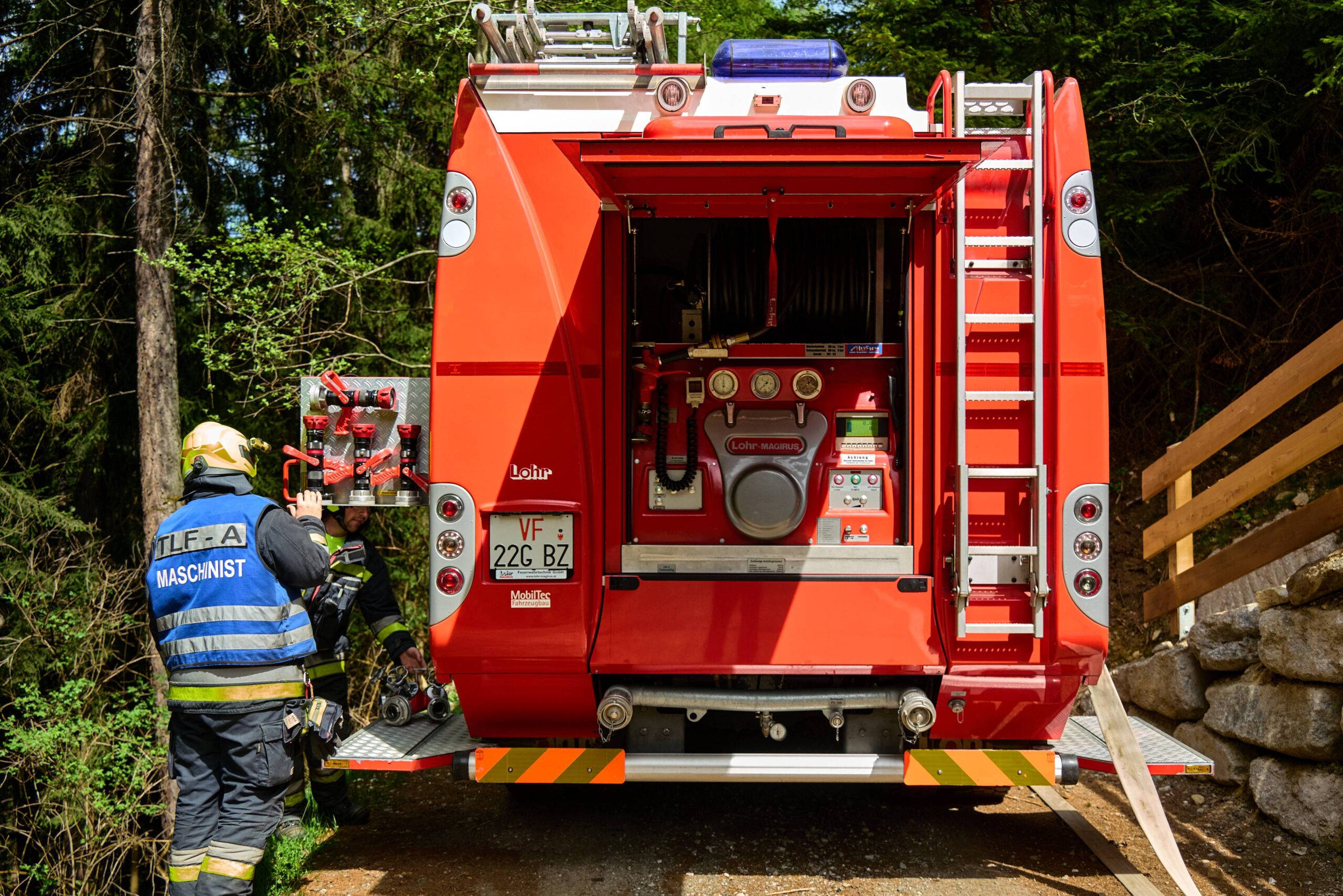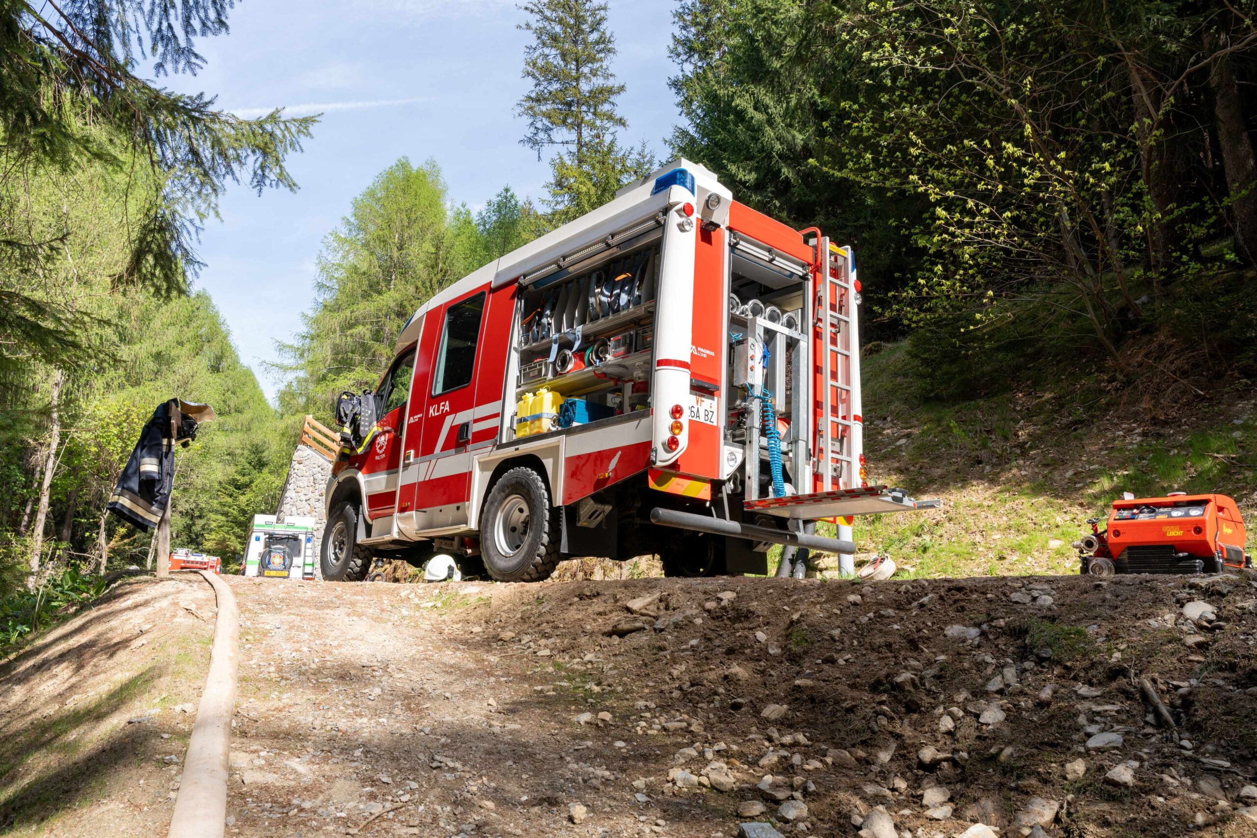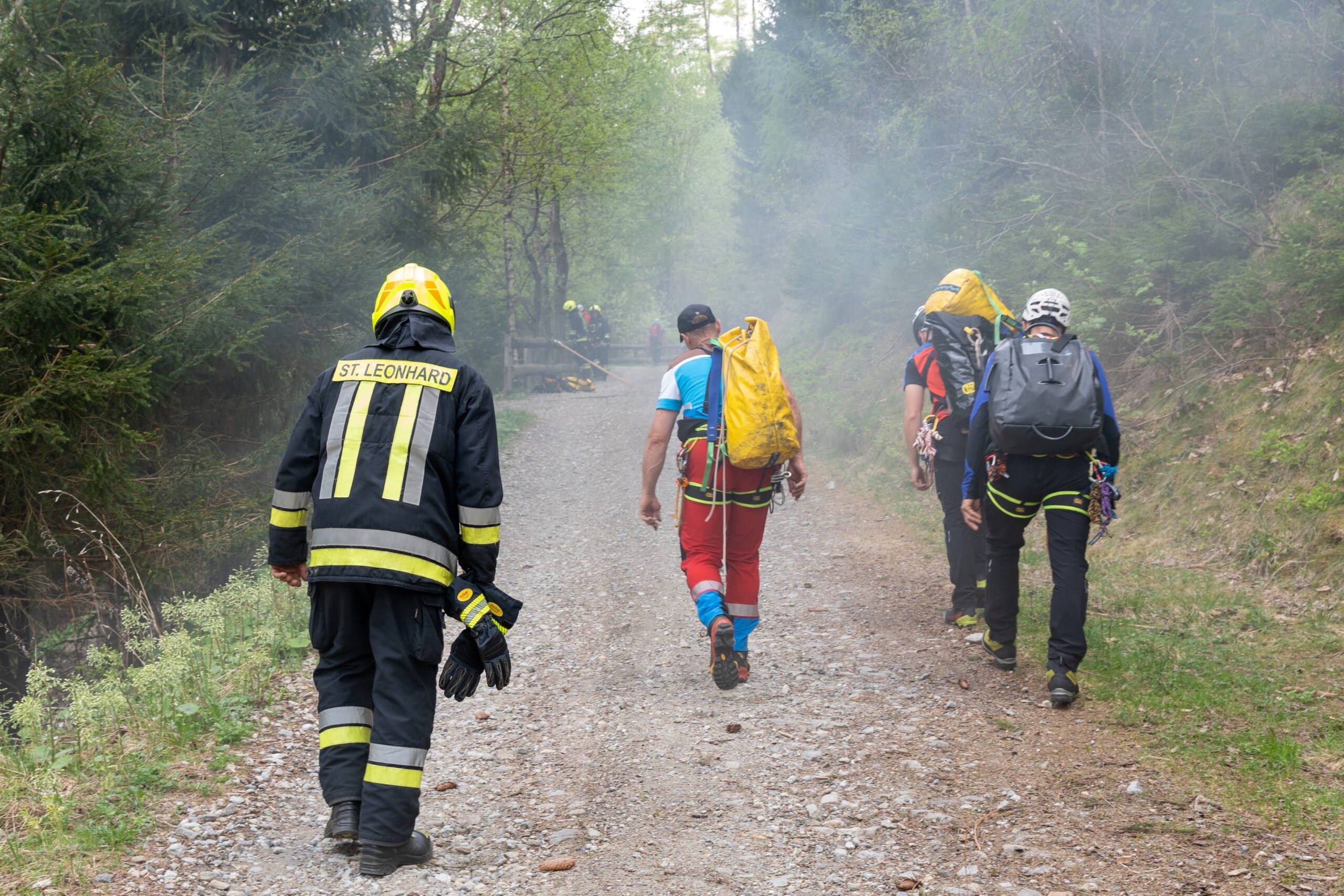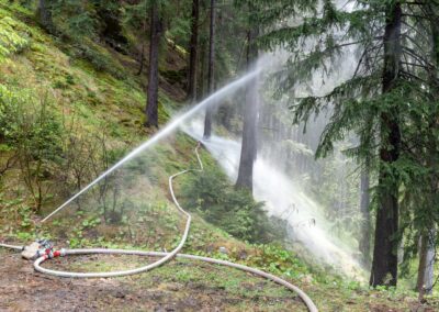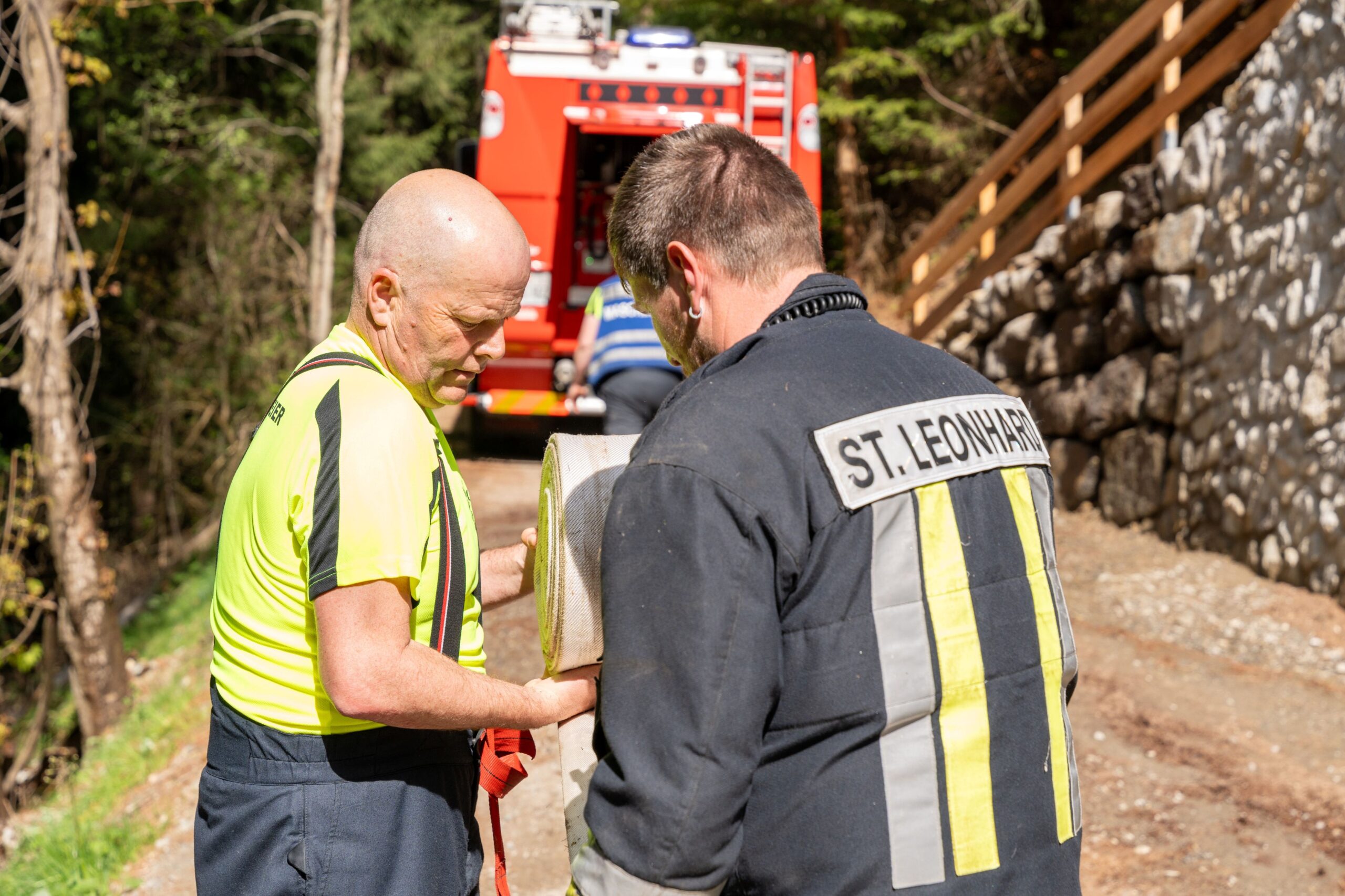 Heuer durfte die FF St. Leonhard eine Waldbrandübung mit einem Löschhubschrauber organisieren. Angenommen wurde ein Waldbrand beim Eingang in das Pfistradtal. Beim sogenannten „Schintleregg“ waren ca. 6.000 m² Waldgebiet in Brand geraten. Gemeinsam mit der FF St. Martin wurden die ersten Löschmaßnahmen eingeleitet, um die weitere Ausbreitung des Brandes zu verhindern. Um Löschwasser aus dem Trinkwassernetz zu sparen, wurde der Aufbau einer Versorgungsleitung veranlasst. Dabei wurde Wasser aus dem Pfistrad-Bach über 180 Höhenmeter und über 1.200 m Schlauchleitung zum Brandobjekt befördert. Diese Aufgabe übernahmen die Kameraden der FF Moos, Rabenstein, Platt und Walten. Insgesamt waren 5 Tragkraftpumpen im Einsatz. Unterstützung bekamen wir auch aus der Luft. Dank eines Hubschraubers konnte sich die Einsatzleitung, bestehend aus Vertretern der Forstbehörde, des FF-Bezirks Meran und der FF St. Leonhard, einen Überblick über das Ausmaß der Schadenslage verschaffen. Im Anschluss wurde der Helikopter genutzt, um erforderliche Transportflüge durchzuführen. Nachdem unser Löschbecken unterhalb des Winnebacher Hofes aufgestellt war, holte sich der Löschhubschrauber dort das Wasser, um es punktgenau abzuwerfen. Mit im Einsatz war auch die Bergrettung St. Leonhard und die FF Meran. In einem sehr abschüssigen Teilbereich wurden Feuerwehrleute sicher abgeseilt, um Glutnester gezielt ablöschen zu können. Die FF Meran hingegen lieferte Flächenregner an, mit welchen entlang eines Forstweges ein Überspringen des Feuers verhindert werden konnte. Die Einsatzleitung wurde beim gegenüberliegenden Spitaler Hof positioniert. Gemeinsam mit dem ELF Meran, Vertretern der Forst und des Feuerwehrbezirks Meran, Bürgermeister Robert Tschöll, den Einsatzleitern der FF St. Leonhard und unserer Drohne gelang es, die verschiedenen Informationen zu bündeln und die erforderlichen Schritte einzuleiten. Insgesamt waren 110 Einsatzkräfte mit 20 Fahrzeugen an der Übung beteiligt. Die FF-Jugend St. Leonhard nahm die Großübung zum Anlass um sich Vorort ein Bild zu machen. Fotografisch festgehalten wurde die Übung von Simone Peist, Roman Schenk und Walter Haller. Abschließend möchten wir uns bei den Grundeigentümern und allen, die zum guten Gelingen der Übung beigetragen haben, recht herzlich bedanken.