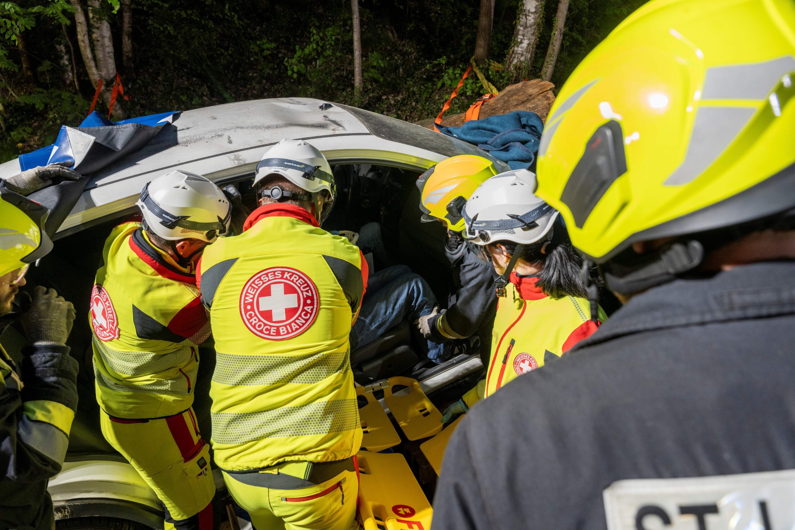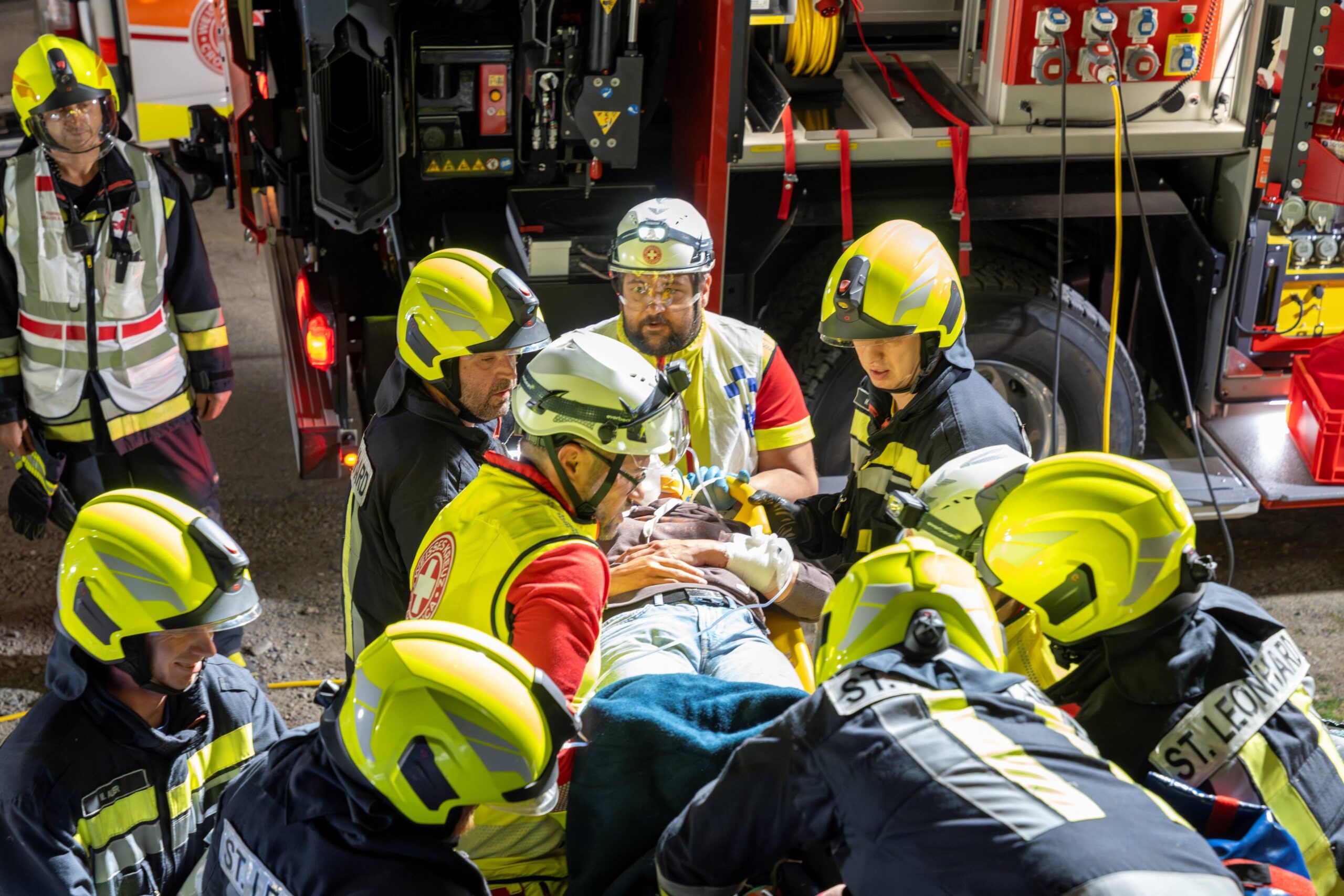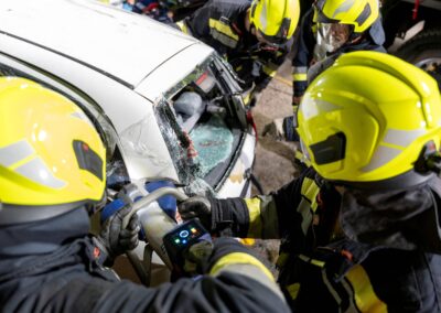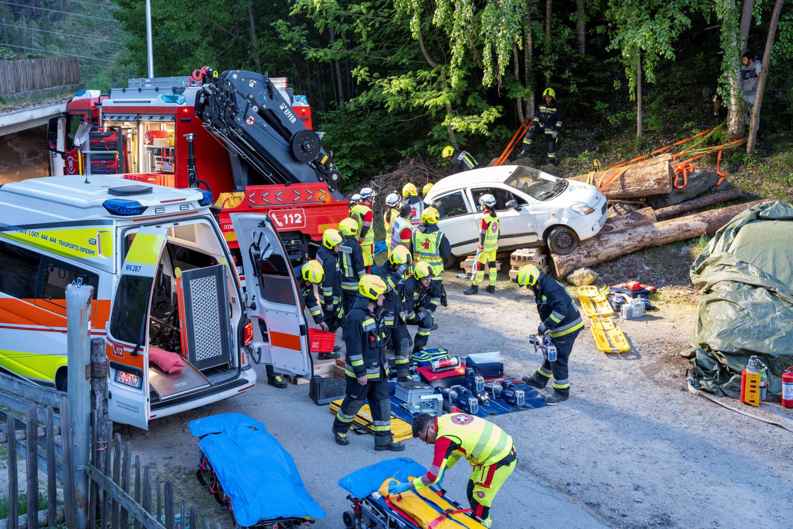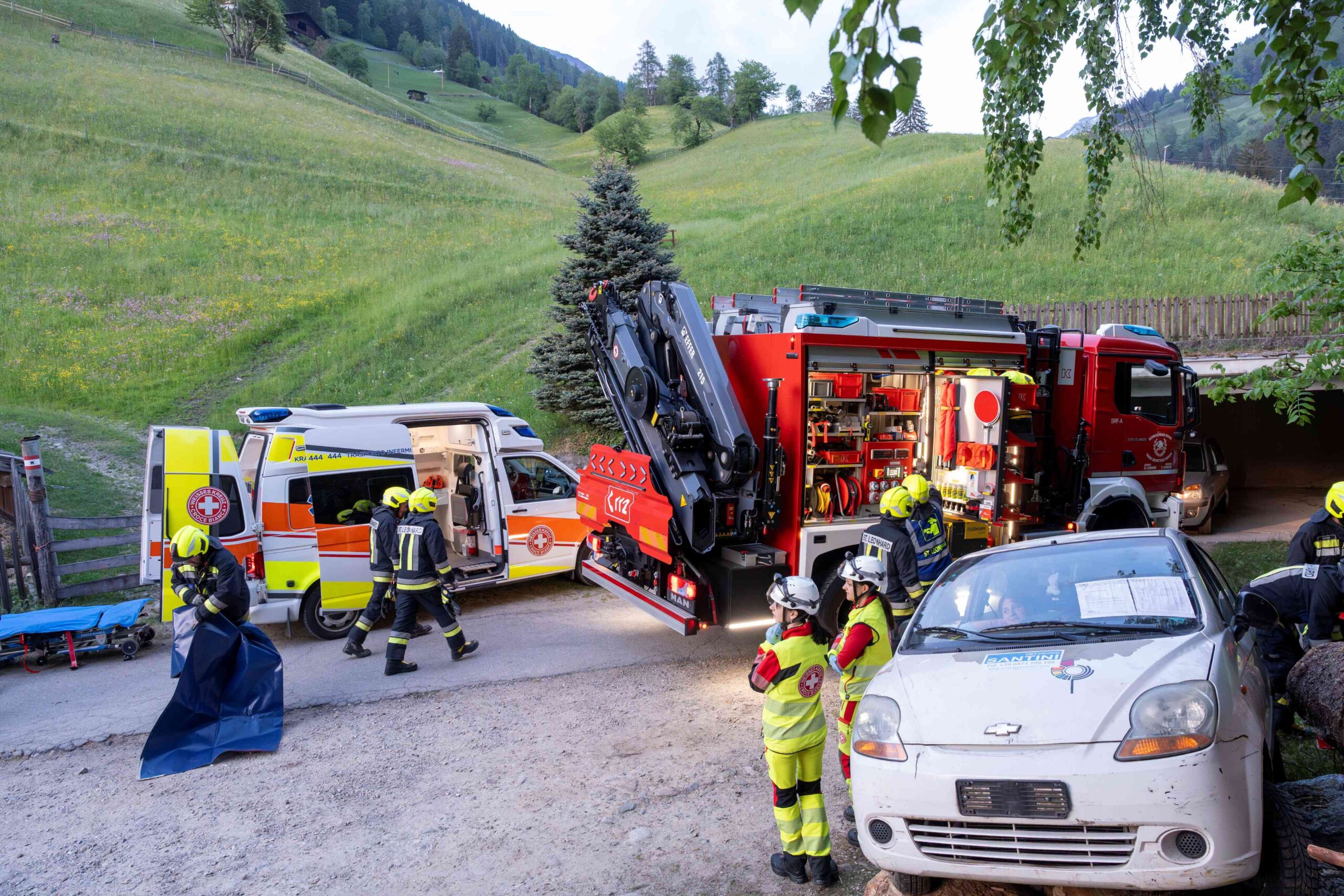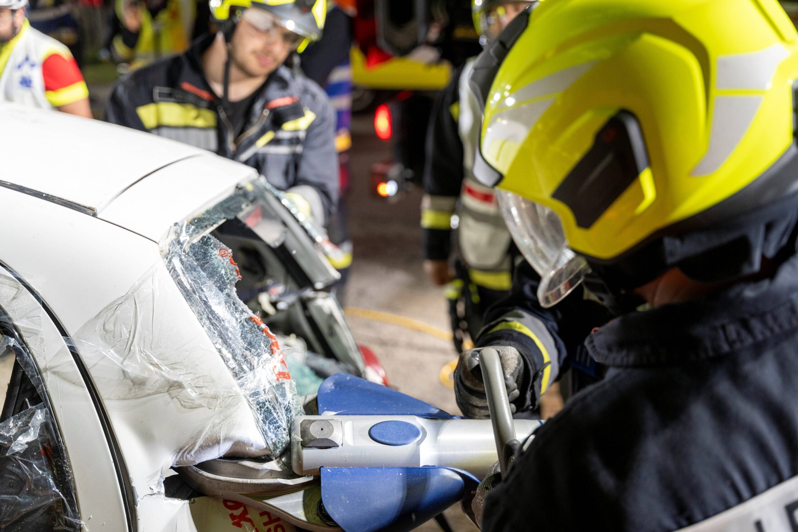 Angenommen wurde ein Verkehrsunfall mit eingeschlossenen und verletzten Personen. Da das Fahrzeug auf einen Baumstamm aufgefahren war und ein weiterer abzurollen drohte, galt es zunächst, das Fahrzeug zu sichern. Nach erfolgter Freigabe nahmen die Helfer*innen des WK-Passeier die Erstversorgung vor. Die Beifahrerin konnte durch die Schaffung einer großen Seitenöffnung schonend geborgen werden.