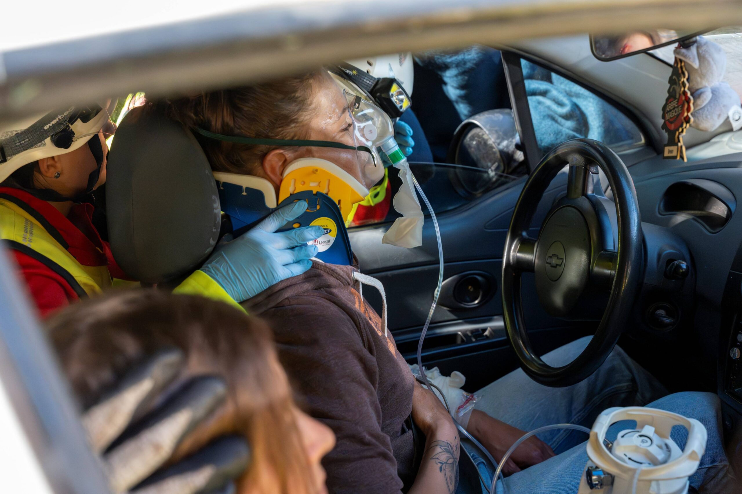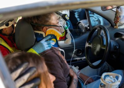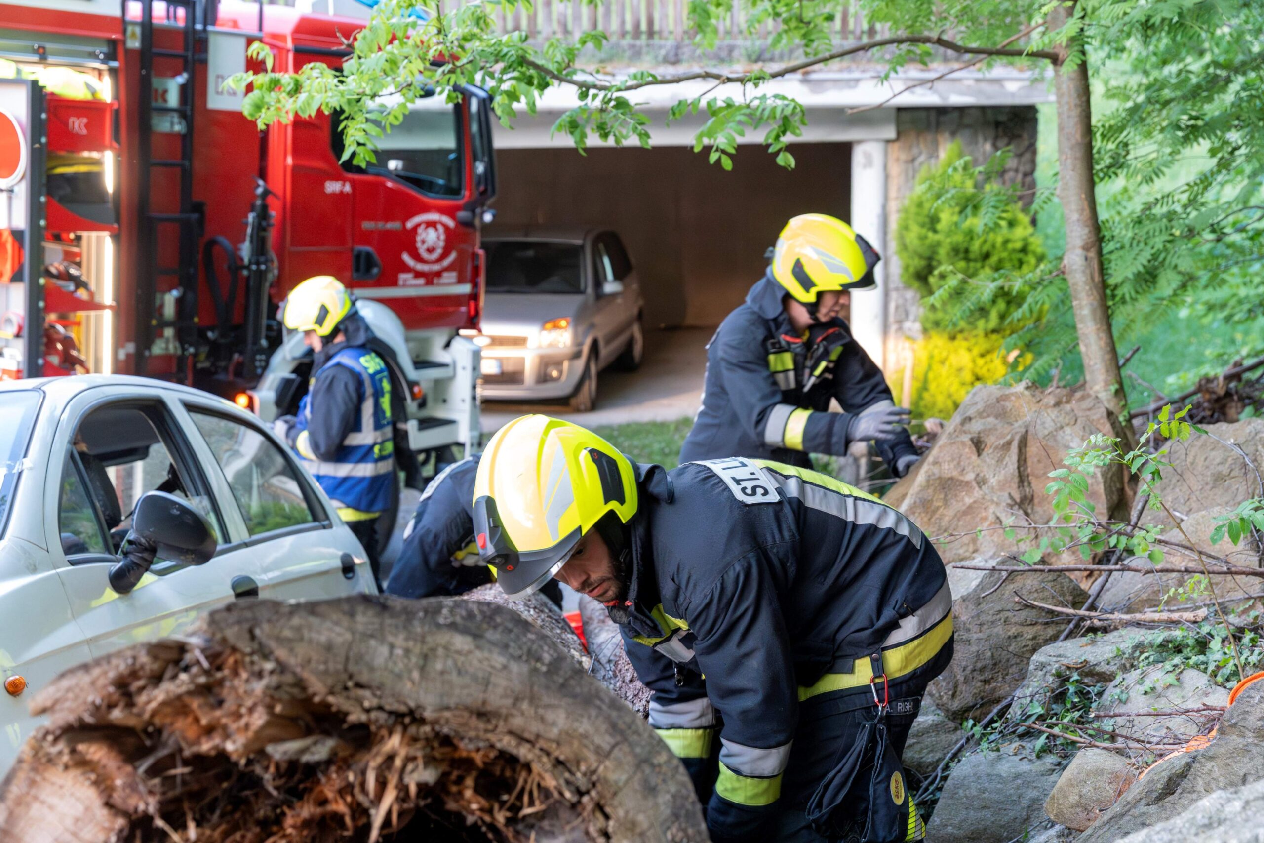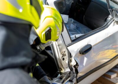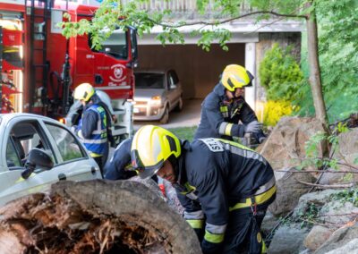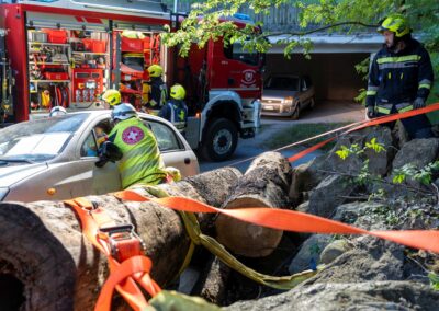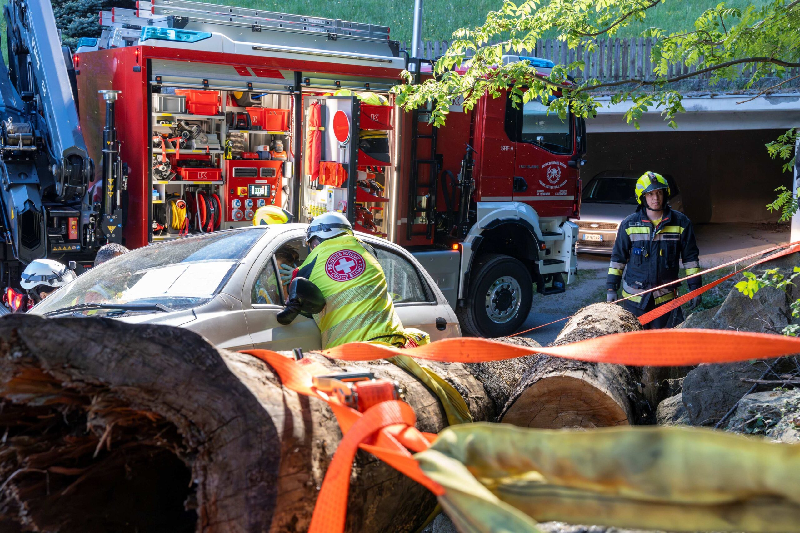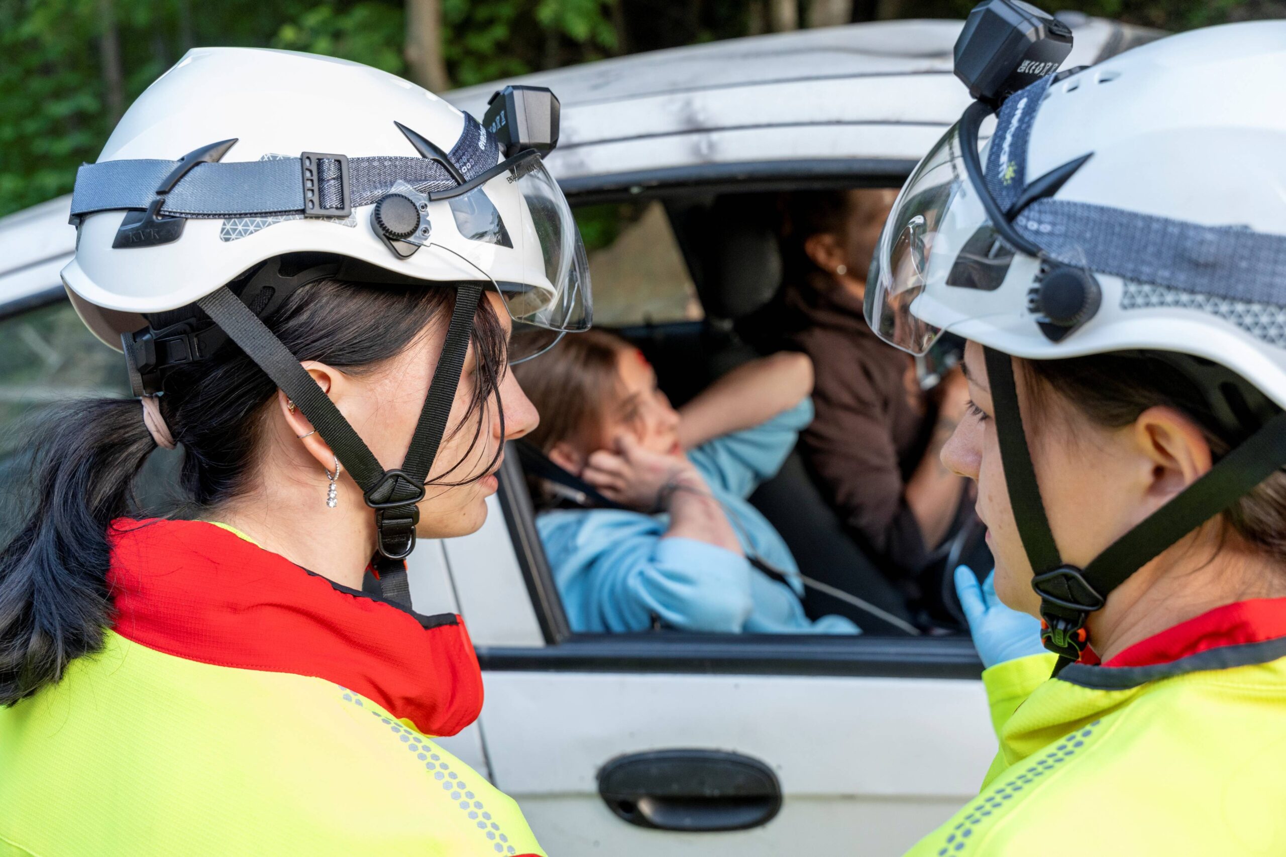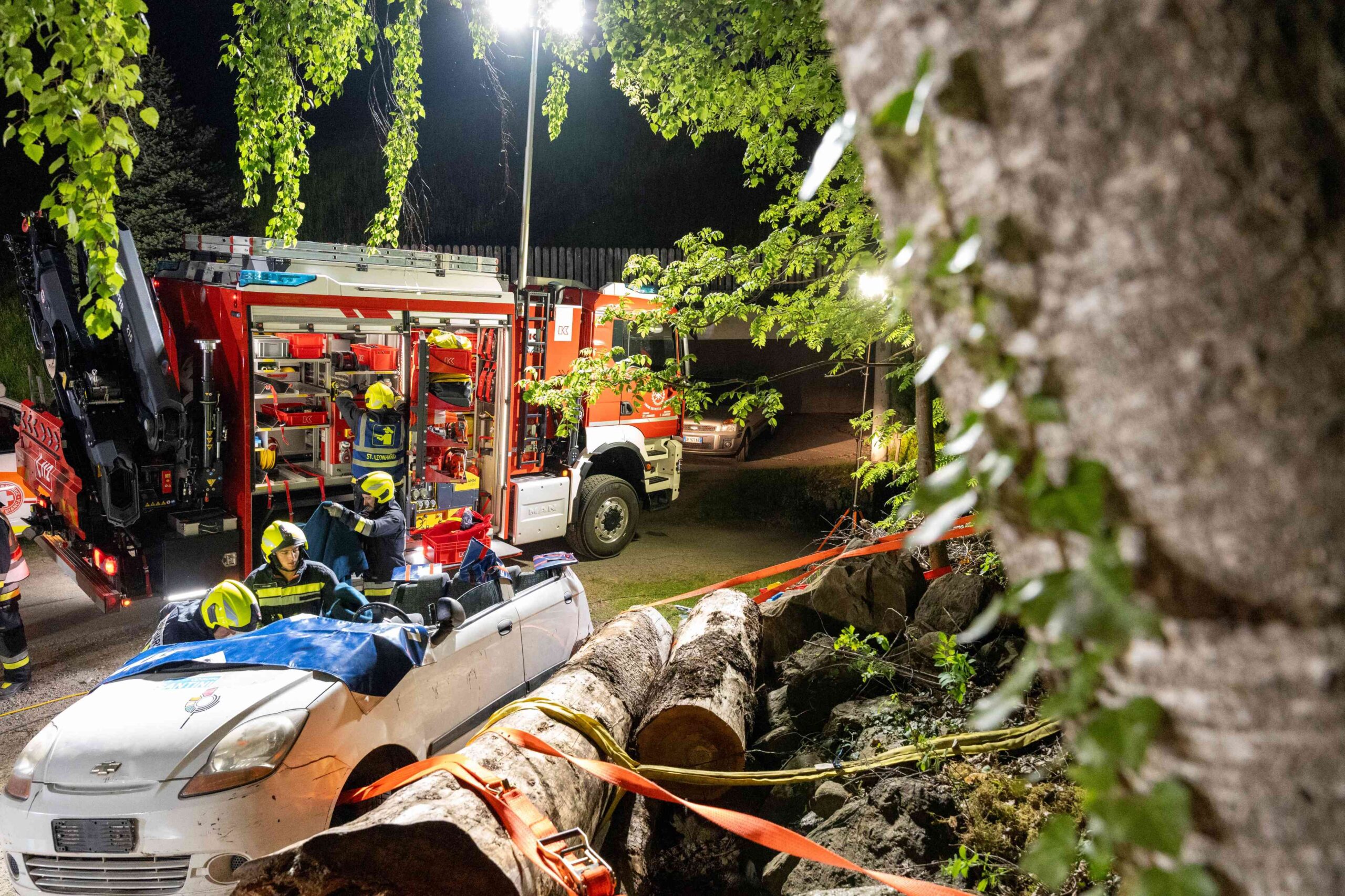 Angenommen wurde ein Verkehrsunfall mit eingeschlossenen und verletzten Personen. Da das Fahrzeug auf einen Baumstamm aufgefahren war und ein weiterer abzurollen drohte, galt es zunächst, das Fahrzeug zu sichern. Nach erfolgter Freigabe nahmen die Helfer*innen des WK-Passeier die Erstversorgung vor. Die Beifahrerin konnte durch die Schaffung einer großen Seitenöffnung schonend geborgen werden.