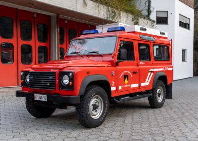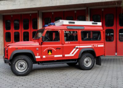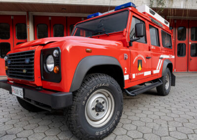 MTF-A Mannschaftstransportfahrzeug Landrover Defender Fahrzeug 2Kabine: 5 Mann oder 7 Mann Baujahr: 2010 Zylinder: 4 Hubraum: 2402 ccm Leistung: 90 kW Länge: 4,639 m Breite: 1,790 m Radstand: 2,794 m Leergewicht: 2500 kg Nutzlast: 550 kg Gesamtgewicht: 3050 kg Anhängelast: 3500 kg ← SRF-A Schweres Rüstfahrzeug KLF-A Kleinlöschfahrzeug (Atemschutz) →