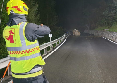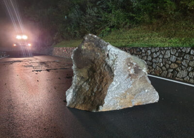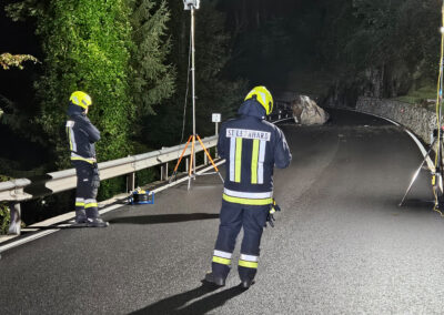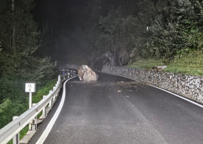 Die heutige Einsatzmeldung lautete „Erdrutsch/Steinschlag“. Ein mehrere Kubikmeter großer Stein ist auf die Timmelsjochstraße gestürzt. Unsere Aufgabe bestand darin, die Straße bis zum Eintreffen des Straßendienstes zu sperren und die Einsatzstelle auszuleuchten. Gemeinsam mit dem Straßendienst wurde der Findling von der Fahrbahn entfernt. Nach der Reinigung der Fahrbahn wurde in Absprache mit dem Straßendienst die Straße für den Verkehr wieder freigegeben.