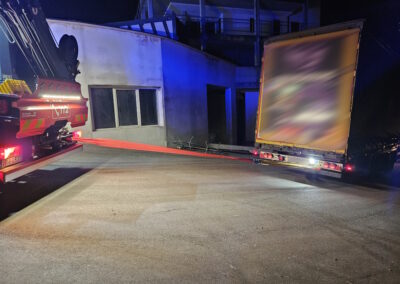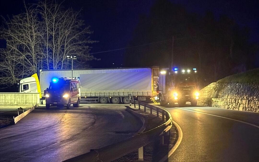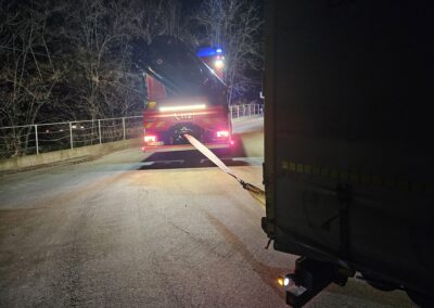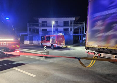 Um 17:45 Uhr wurden wir heute zu einer technischen Hilfeleistung gerufen. Ein Sattelschlepper ist im Bereich der Gewerbezone „Lahner Säge“ in eine Notlage geraten. Der voll beladene Sattelschlepper schaffte es nicht mehr, aus eigener Kraft die Zufahrtsrampe der Gewerbezone hochzufahren, um wieder auf die Staatsstraße zu gelangen. Mithilfe unseres schweren Rüstfahrzeuges zogen wir den LKW die Rampe hoch. Als herausfordernd stellten sich der spitze Einbiegewinkel in die Hauptstraße und der stark wechselnde Neigungswinkel der Zoneneinfahrt dar. Bedingt durch diese Problematiken kam es zu Verkehrsanhaltungen auf der Passeirerstraße. Mit im Einsatz war eine Carabinieri-Einheit.