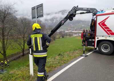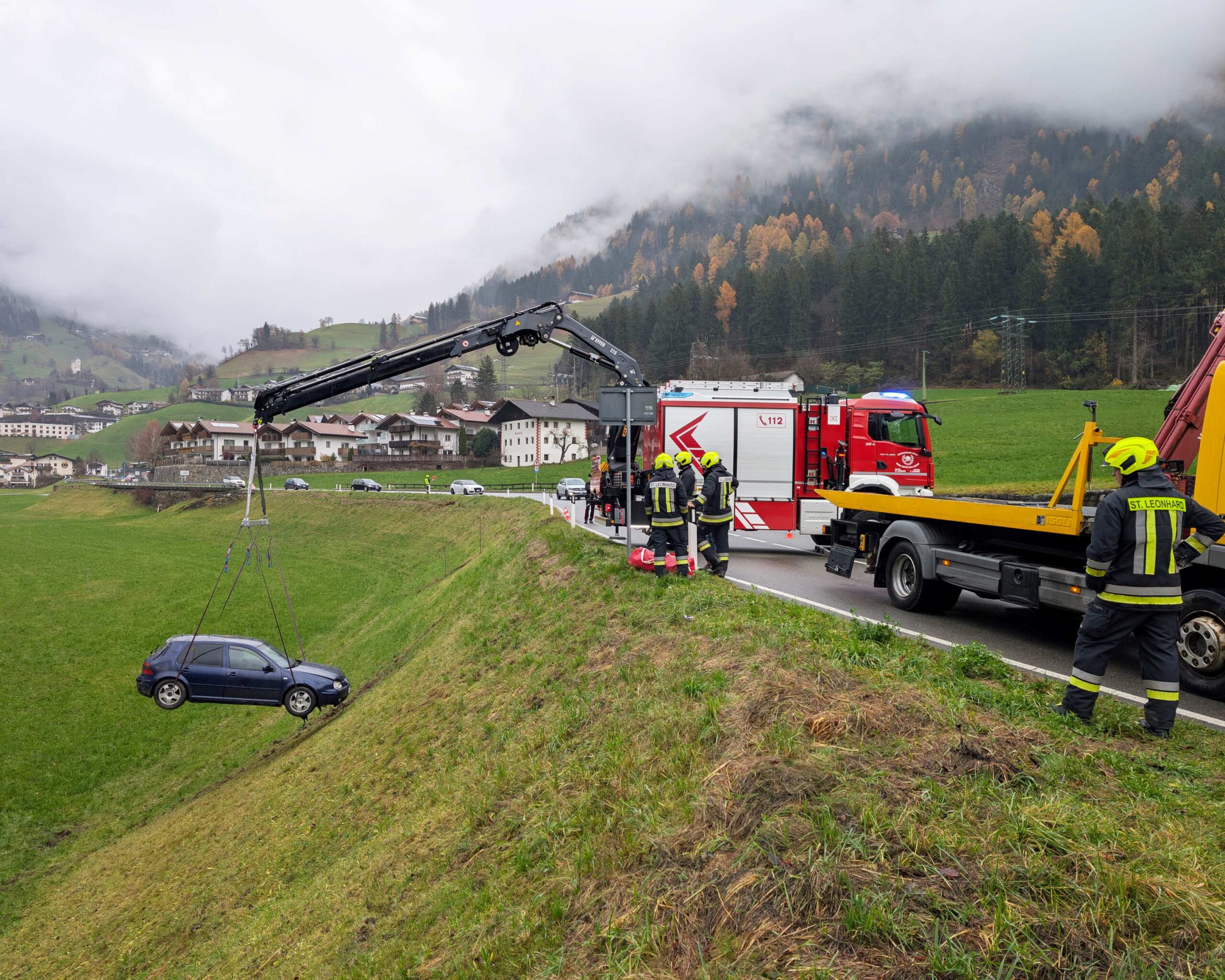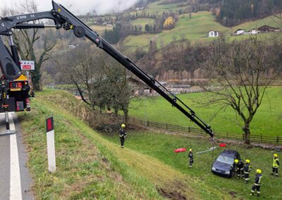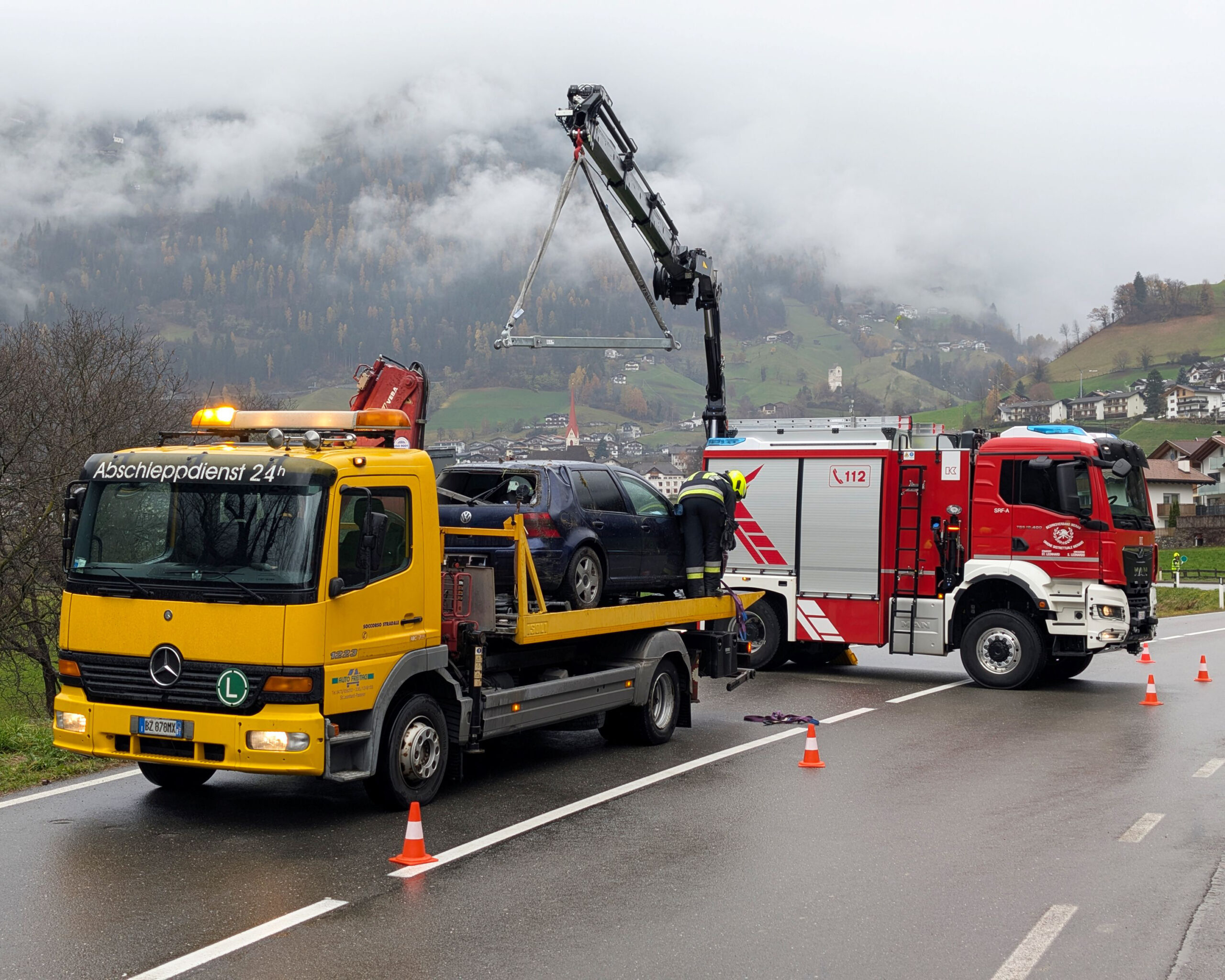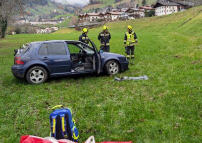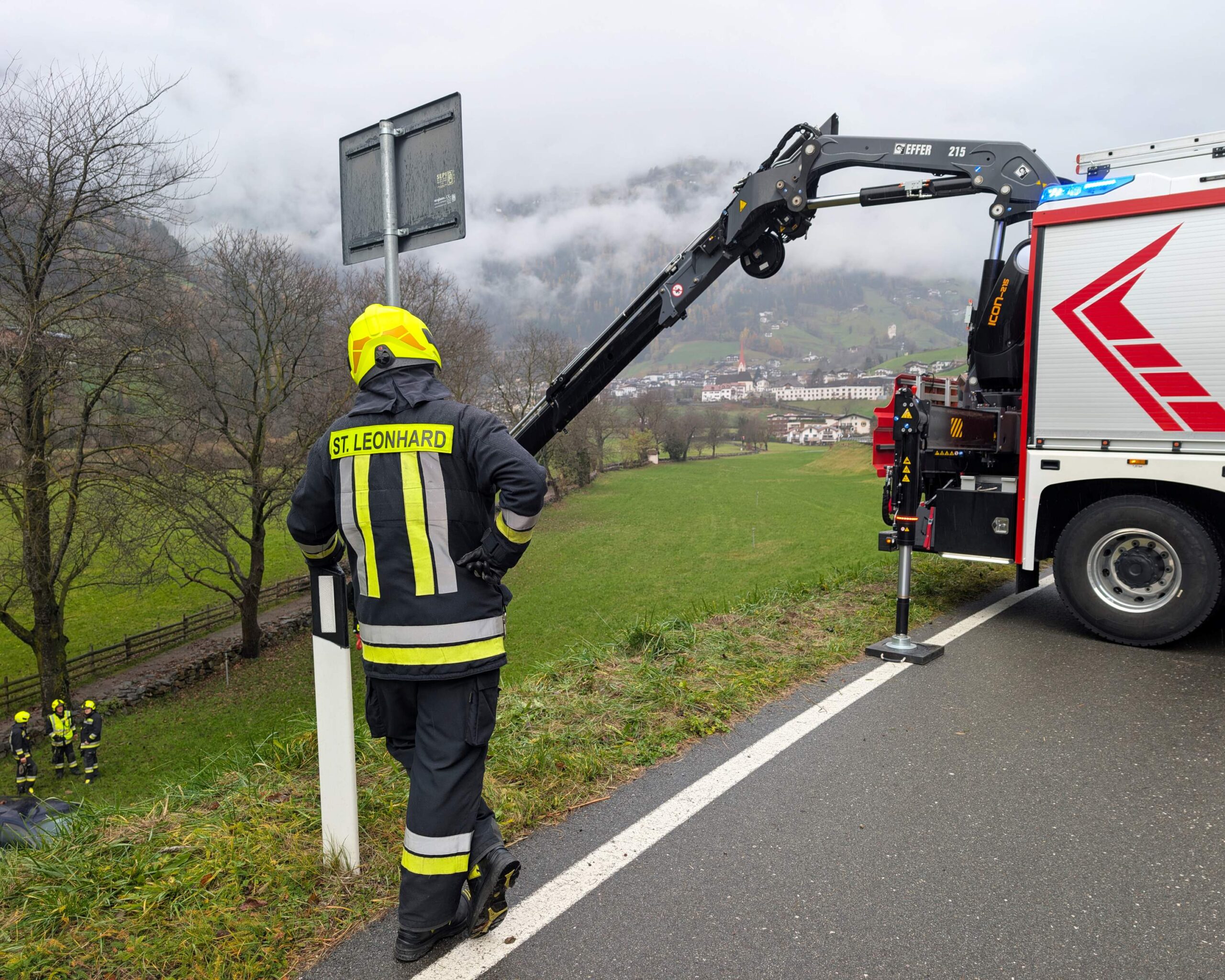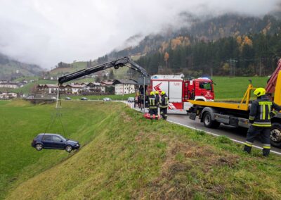 Die Einsatzmeldung lautete: „Verkehrsunfall, ohne eingeklemmte Personen, PKW über der Straße“. Ein Fahrzeug war auf der Passeirerstraße bei Km. 18+950 über die Fahrbahn hinausgeraten und über die Straßenböschung gestürzt. Wir unterstützten den Rettungsdienst bei der Erstversorgung. Die Flugrettung war mit dem Heli Pelikan 3 ebenfalls im Einsatz. Die Unfallstelle wurde von uns abgesichert und das verunfallte Fahrzeug wurde von uns wieder auf die Straße gebracht.