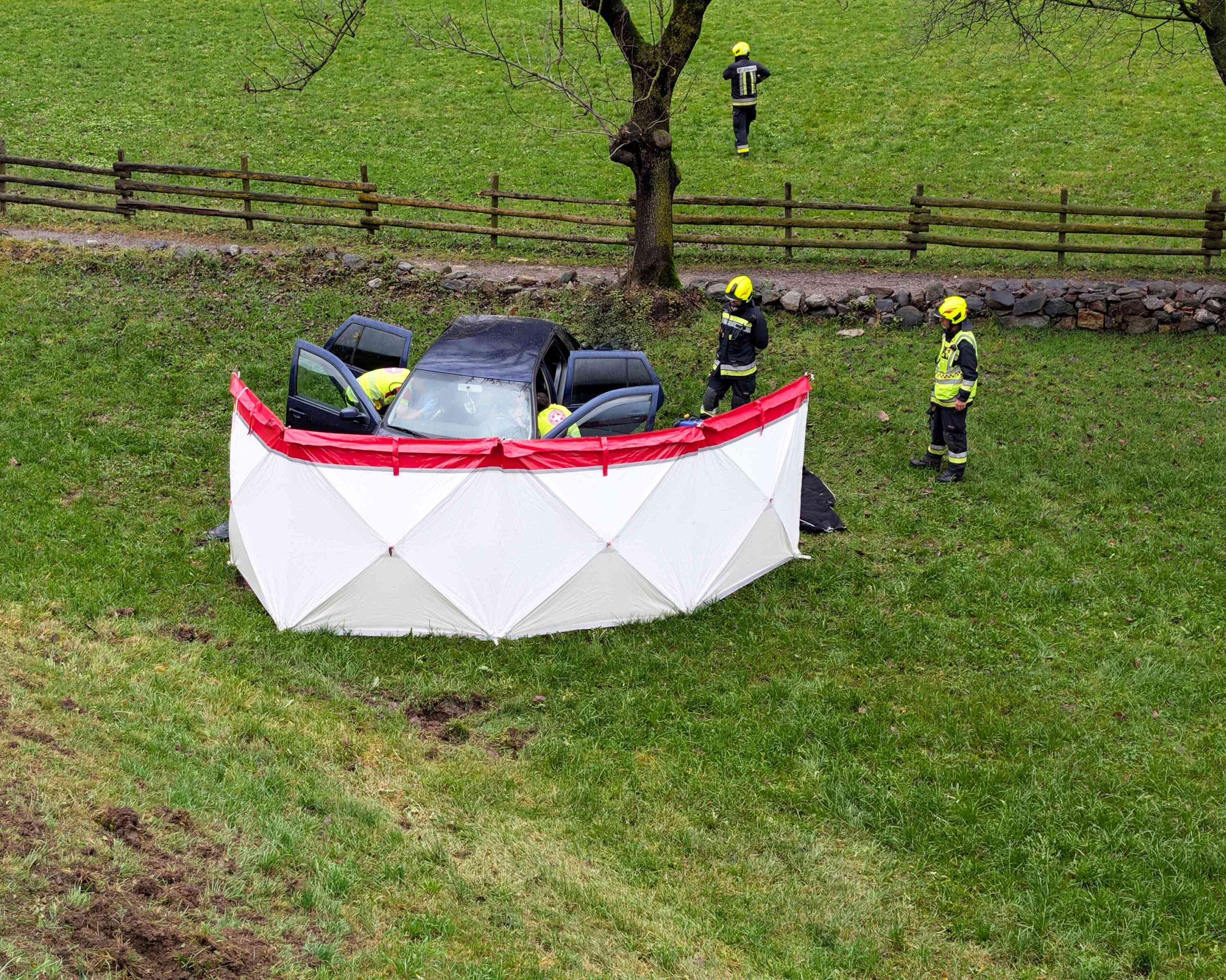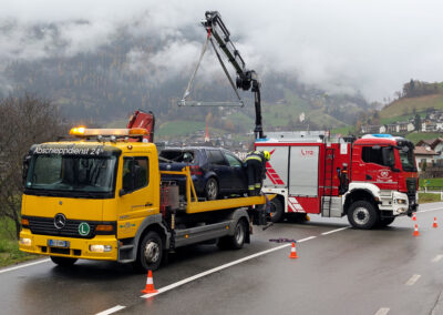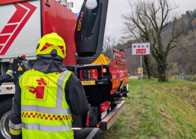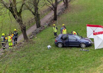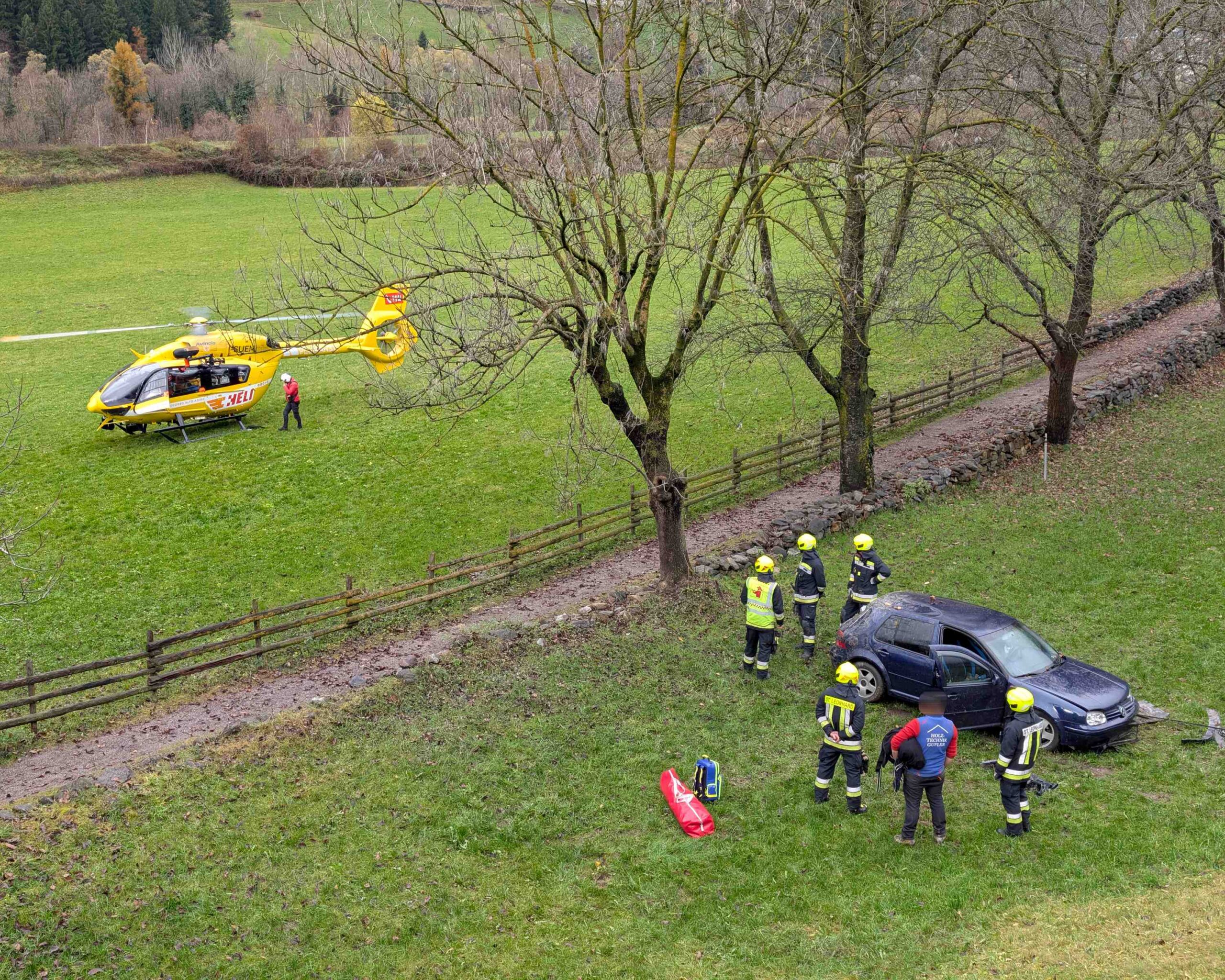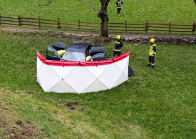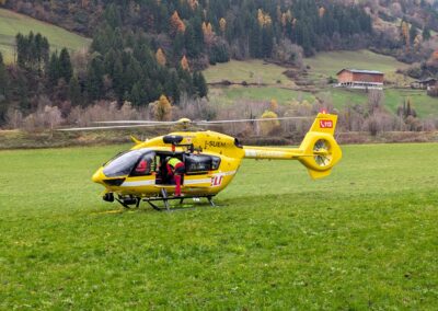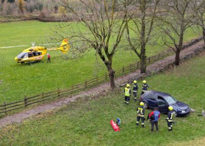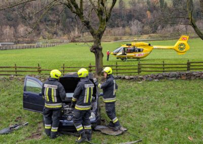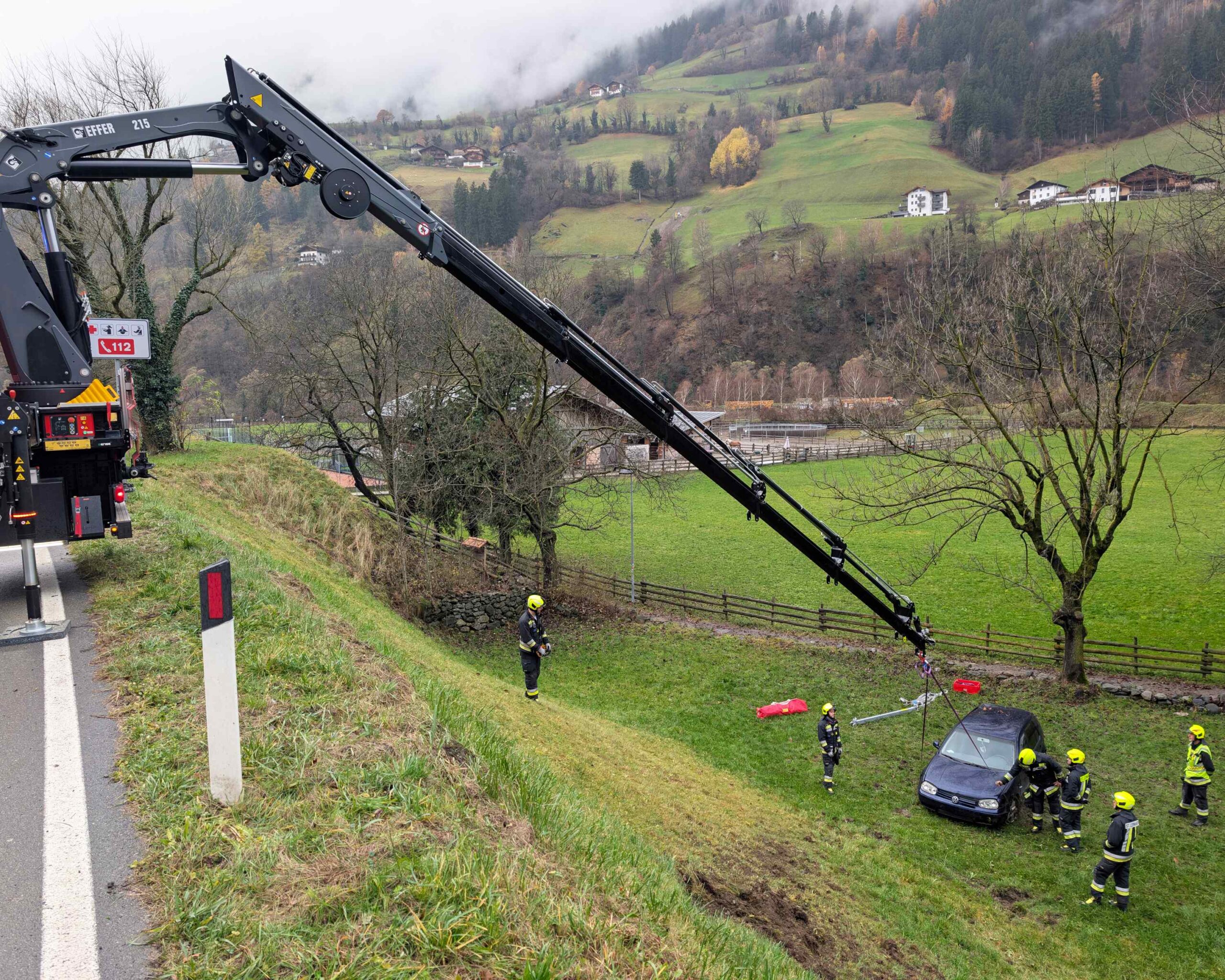 Die Einsatzmeldung lautete: „Verkehrsunfall, ohne eingeklemmte Personen, PKW über der Straße“. Ein Fahrzeug war auf der Passeirerstraße bei Km. 18+950 über die Fahrbahn hinausgeraten und über die Straßenböschung gestürzt. Wir unterstützten den Rettungsdienst bei der Erstversorgung. Die Flugrettung war mit dem Heli Pelikan 3 ebenfalls im Einsatz. Die Unfallstelle wurde von uns abgesichert und das verunfallte Fahrzeug wurde von uns wieder auf die Straße gebracht.